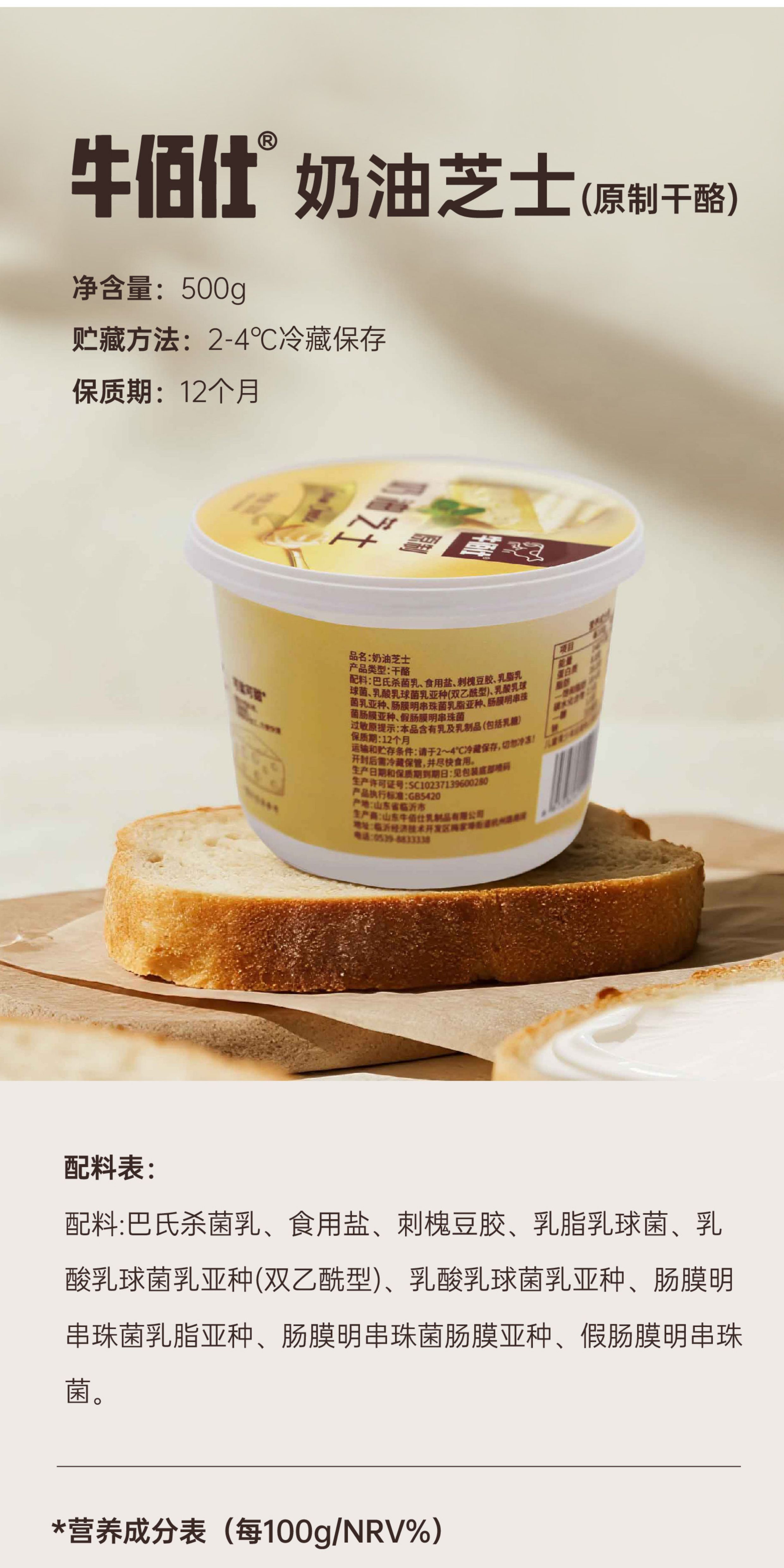 500g 牛佰仕 原制奶油芝士 烘焙家用奶油奶酪 巴斯克芝士蛋糕原材料干酪 烘焙原料