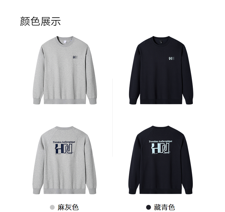 GXG男装 双色简约休闲通勤圆领卫衣 24冬热卖G24X314022