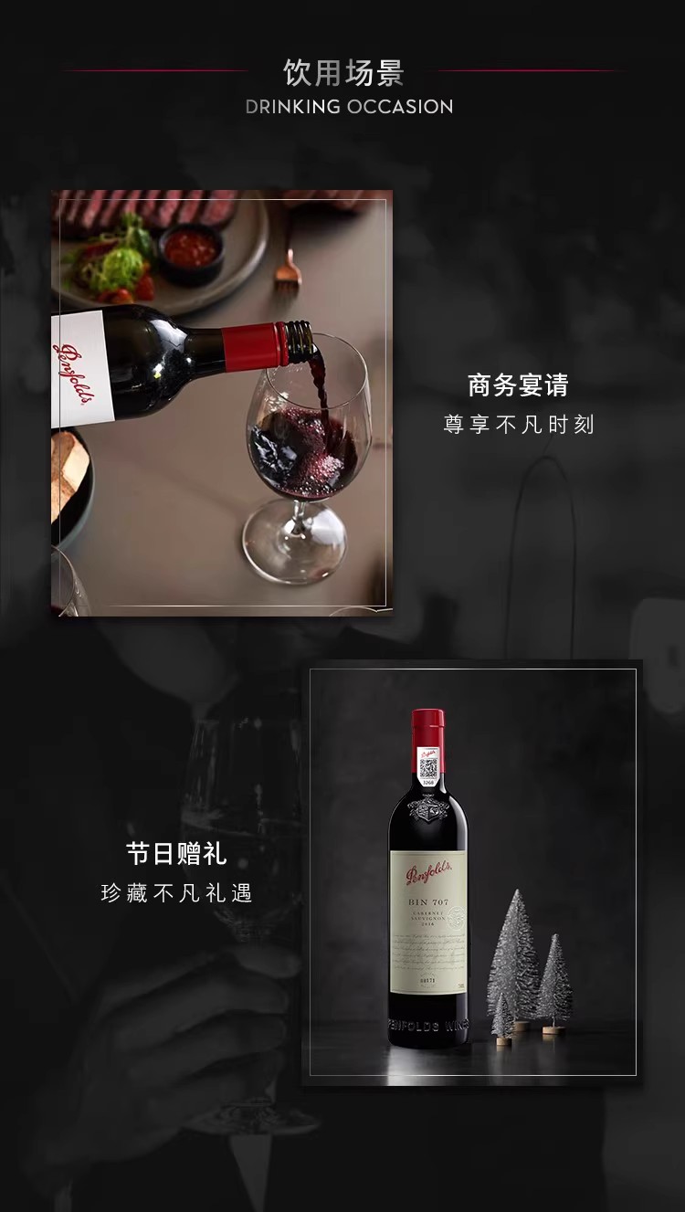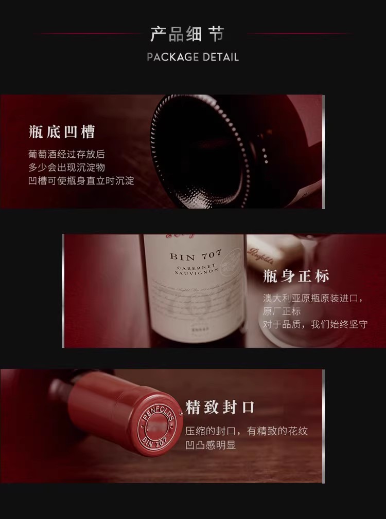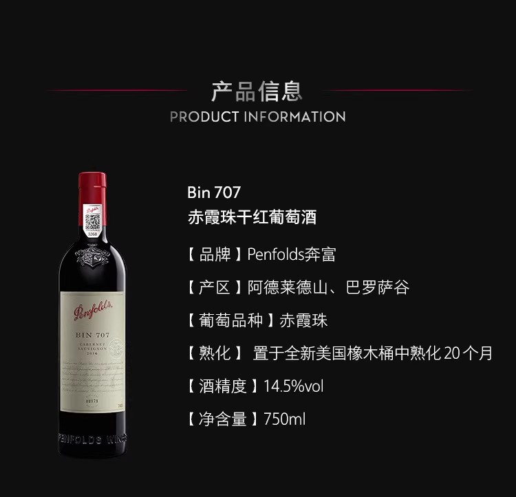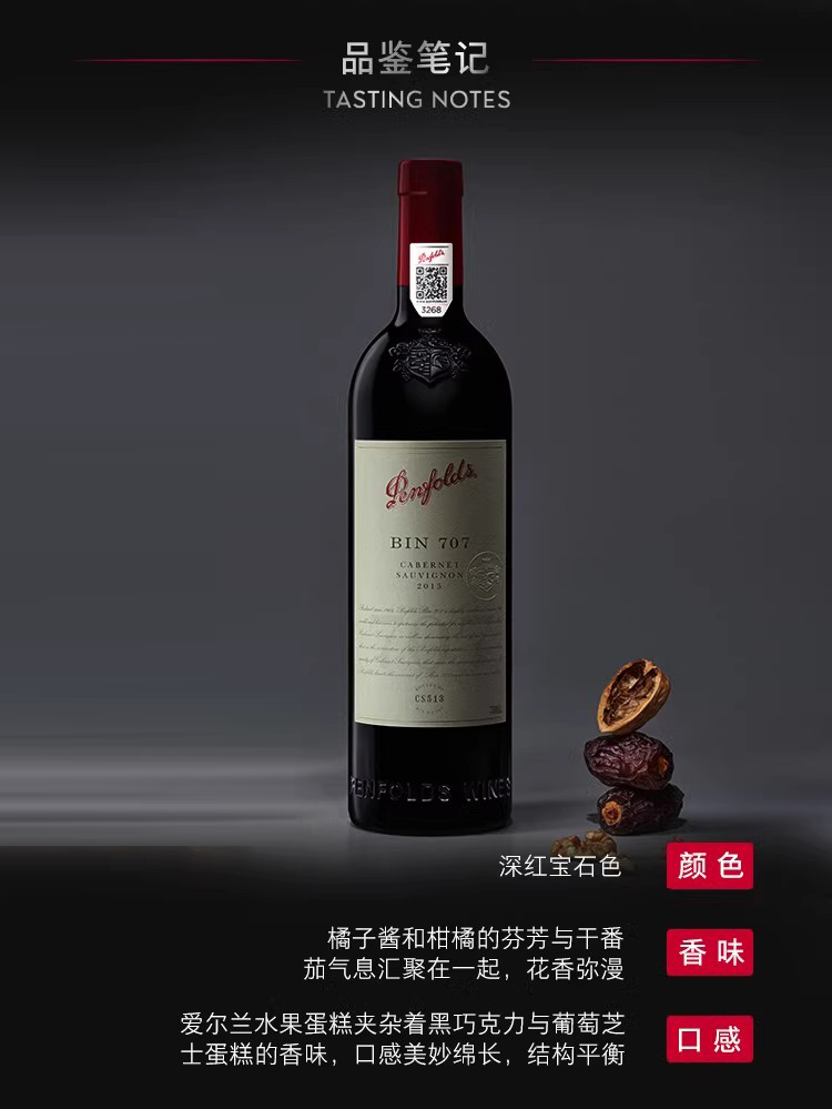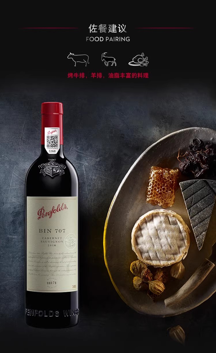 Penfolds/奔富红酒BIN707赤霞珠单支750ml干红葡萄酒