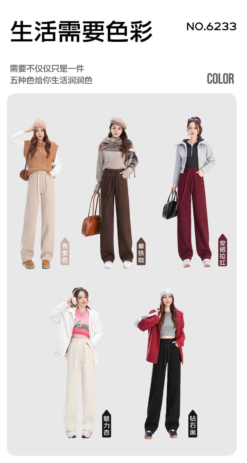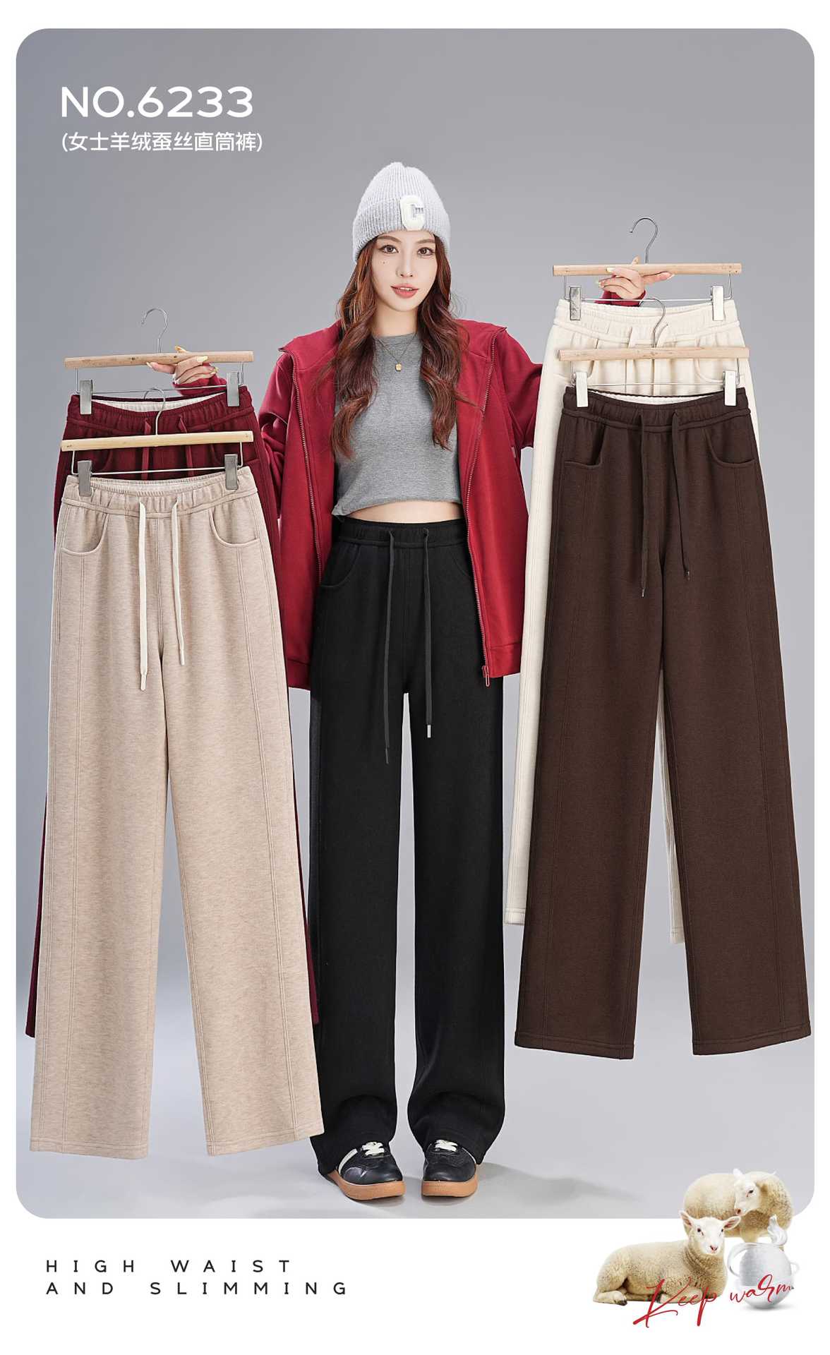 「抖音同款!数色可选」五只白鹅羊毛蚕丝裤垂感直筒灰色秋冬裤子加厚阔腿显瘦宽松女下装