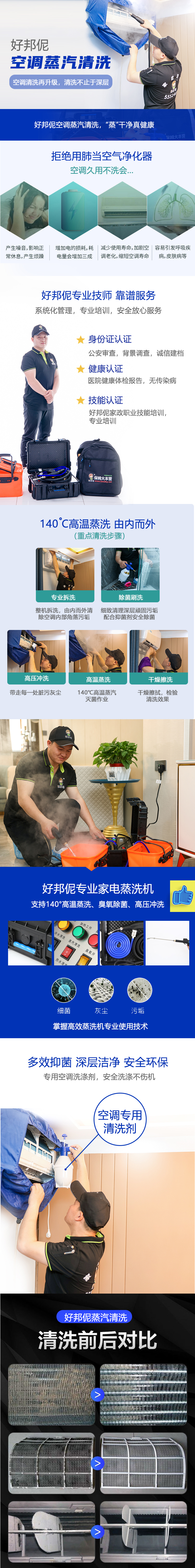 1.空调蒸汽清洗为柜机空调和挂机空调蒸汽清洗,不含空调加氨和维修;