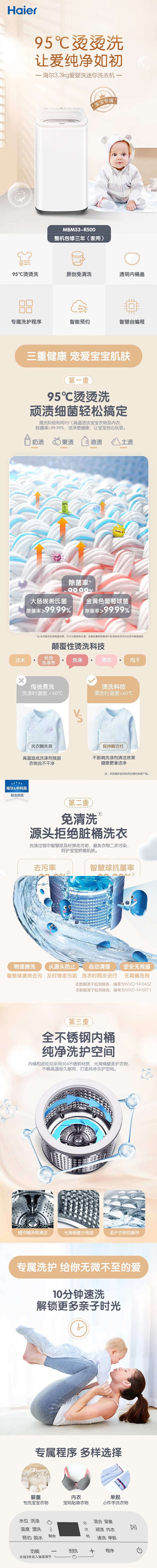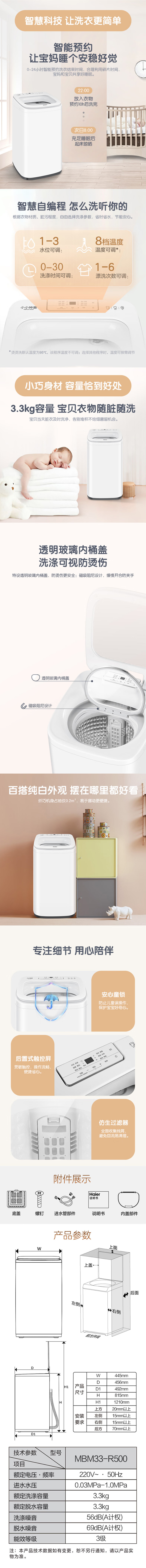 海尔 洗衣机 MBM33-R500 3.3KG 波轮 定频 三级能效 无烘干 下排水 白色系