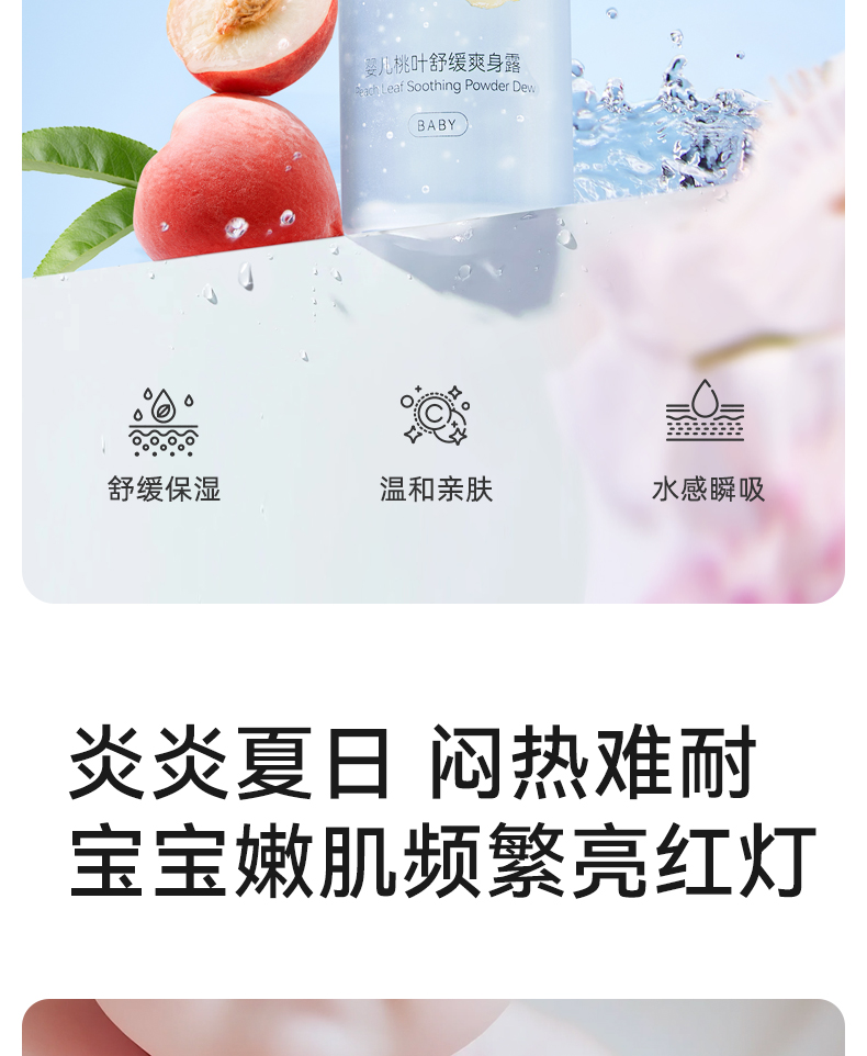 【100元3件随心配】(买6件加赠帆布包)婴儿爽身露新生宝宝专用痱子粉桃叶精华水液体天然桃子水