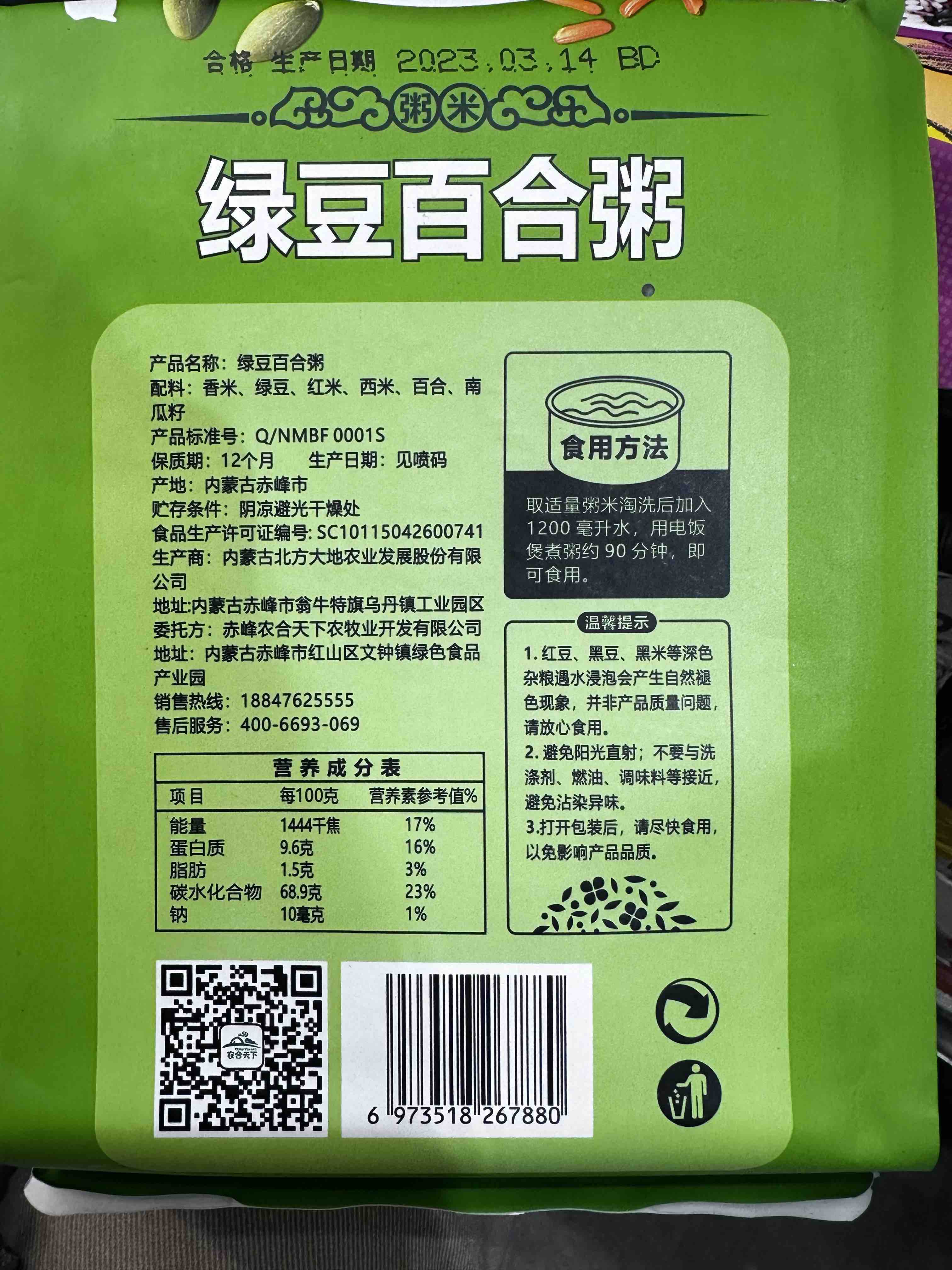 九鑫山珍绿豆百合粥1kg