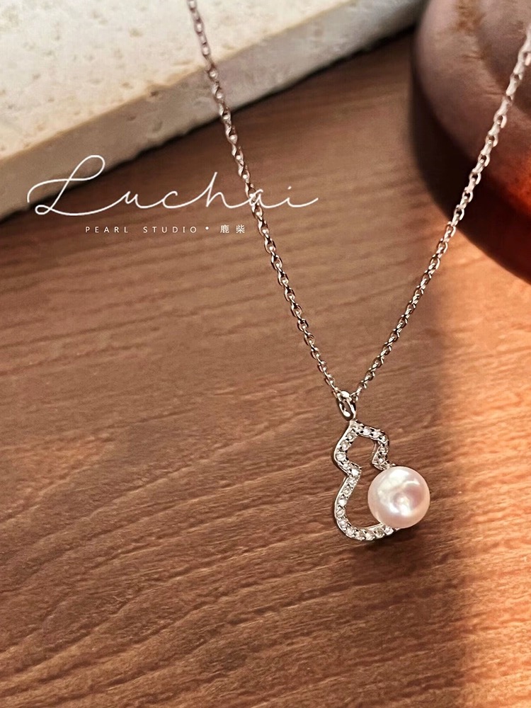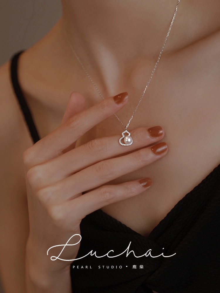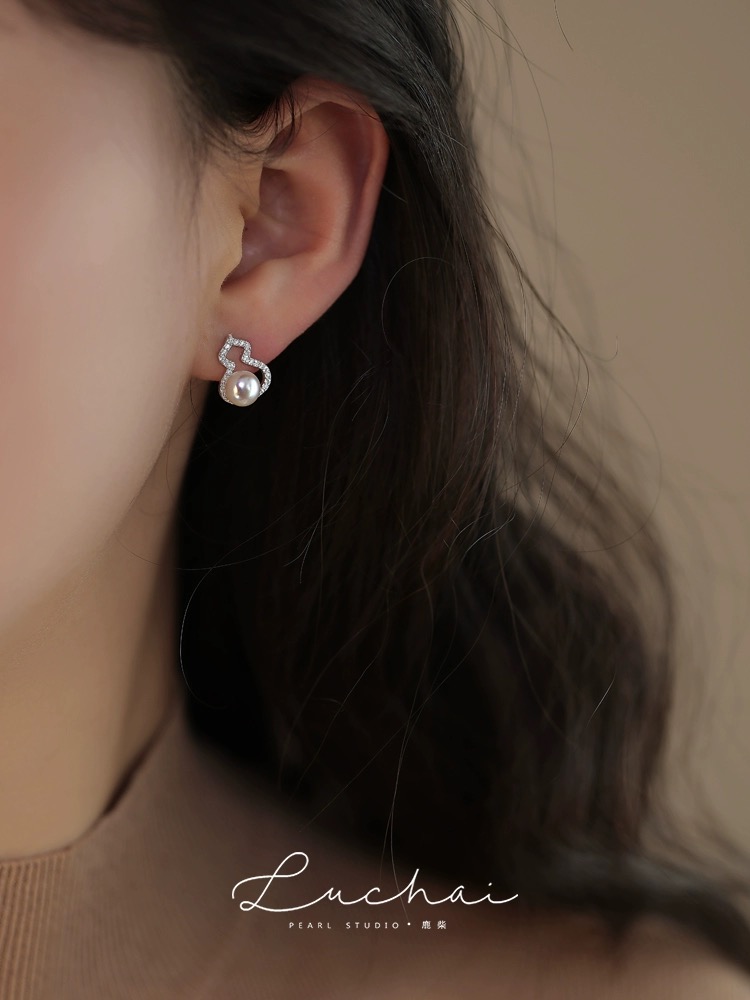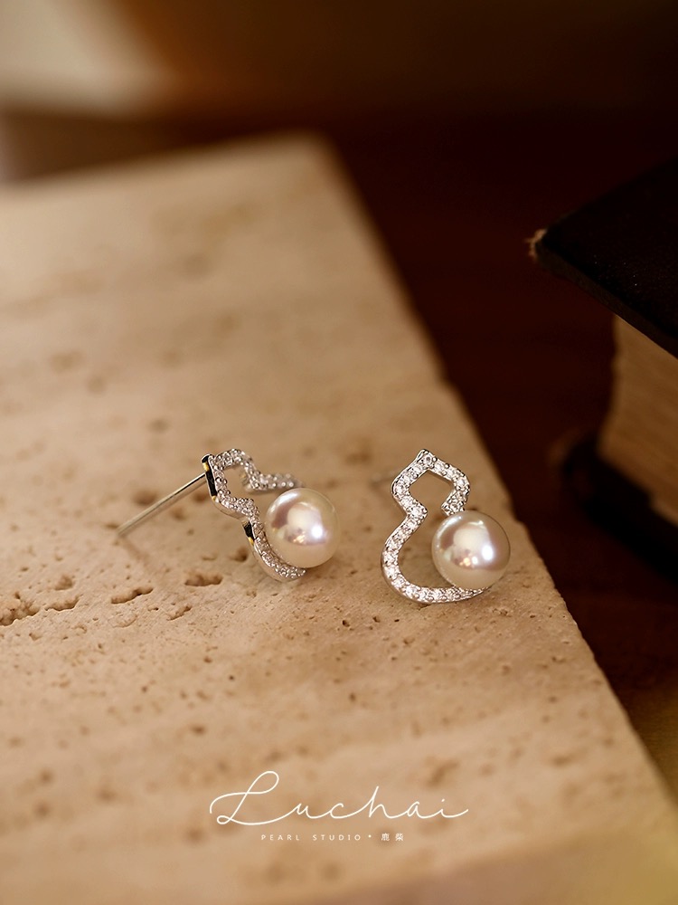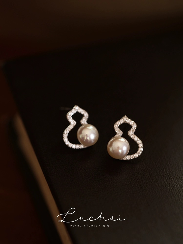天然淡水湖纯银葫芦吊坠耳环套盒