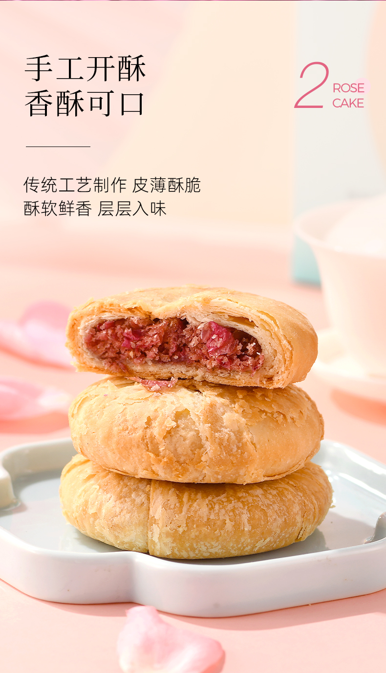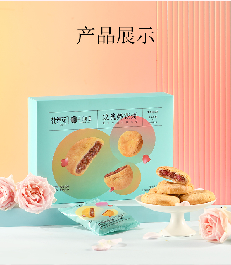 正宗平阴玫瑰鲜花饼礼盒装 花香馥郁~把鲜花吃进嘴里!!