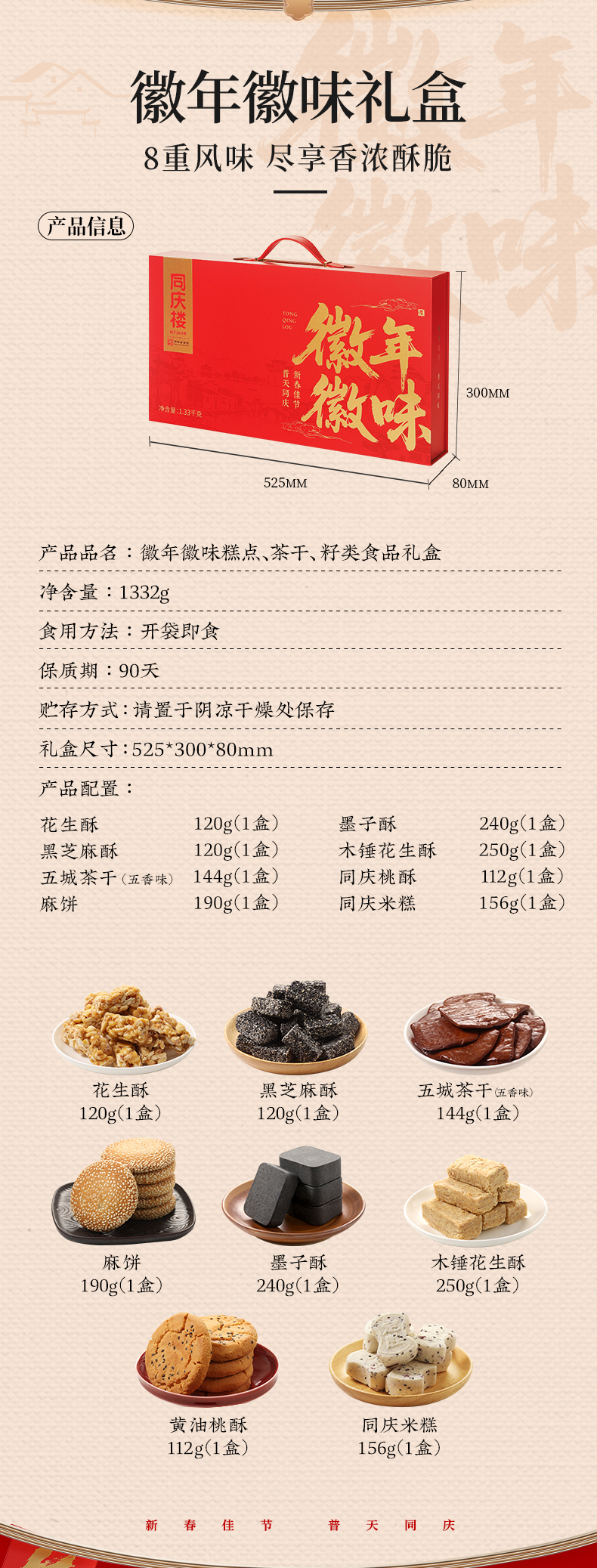 同庆楼 徽年徽味新年礼盒1332g 特色糕点 徽州八礼 礼传心意 48小时发货
