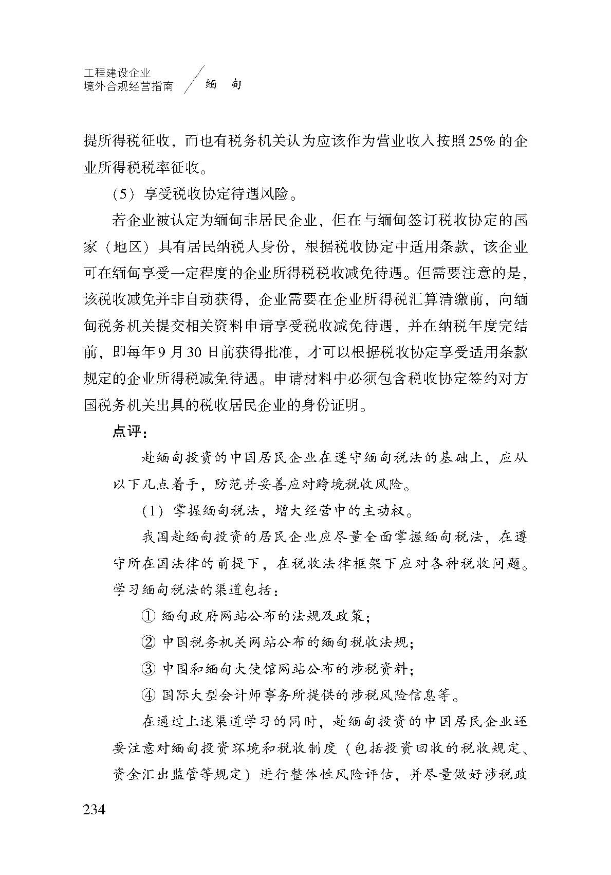 我国赴缅甸投资的居民企业应尽量全面掌握缅甸税法,在遵守所在国法律的前提下,在税收法律框架下应对各种税收问题。学习缅甸税法的渠道包括: