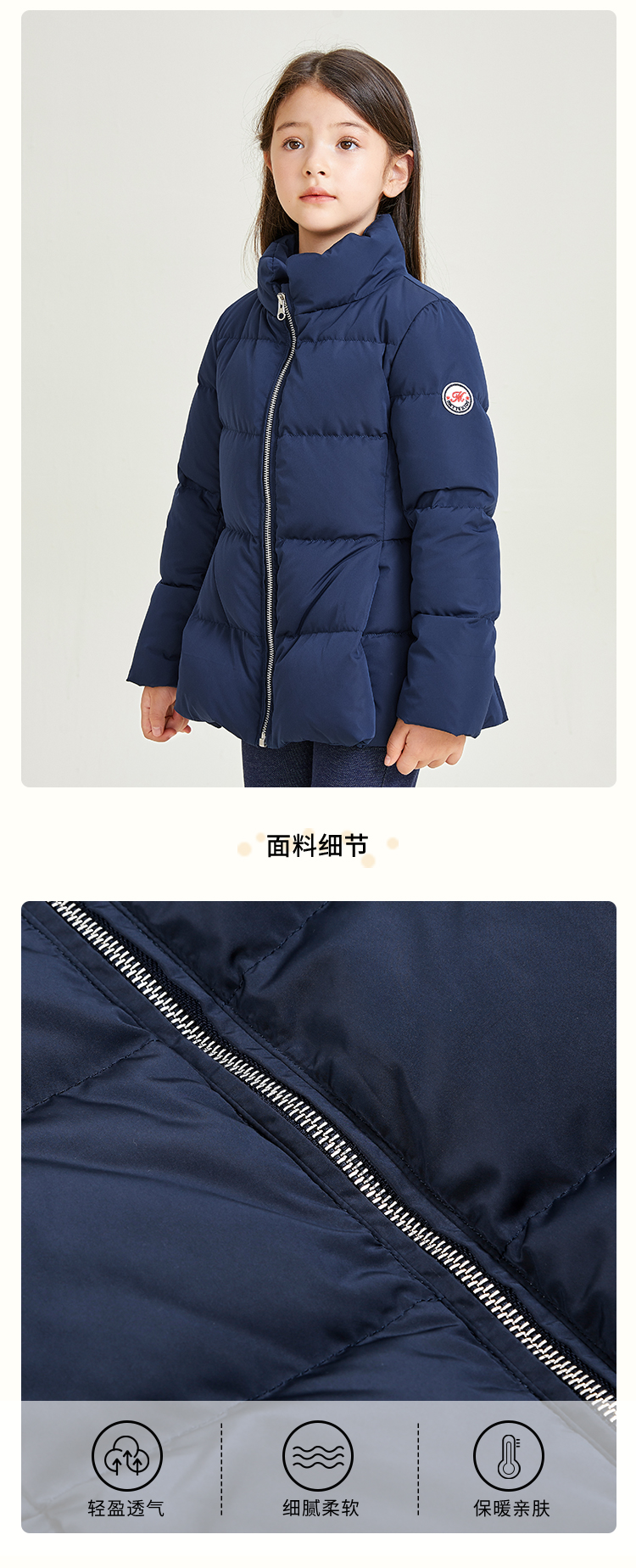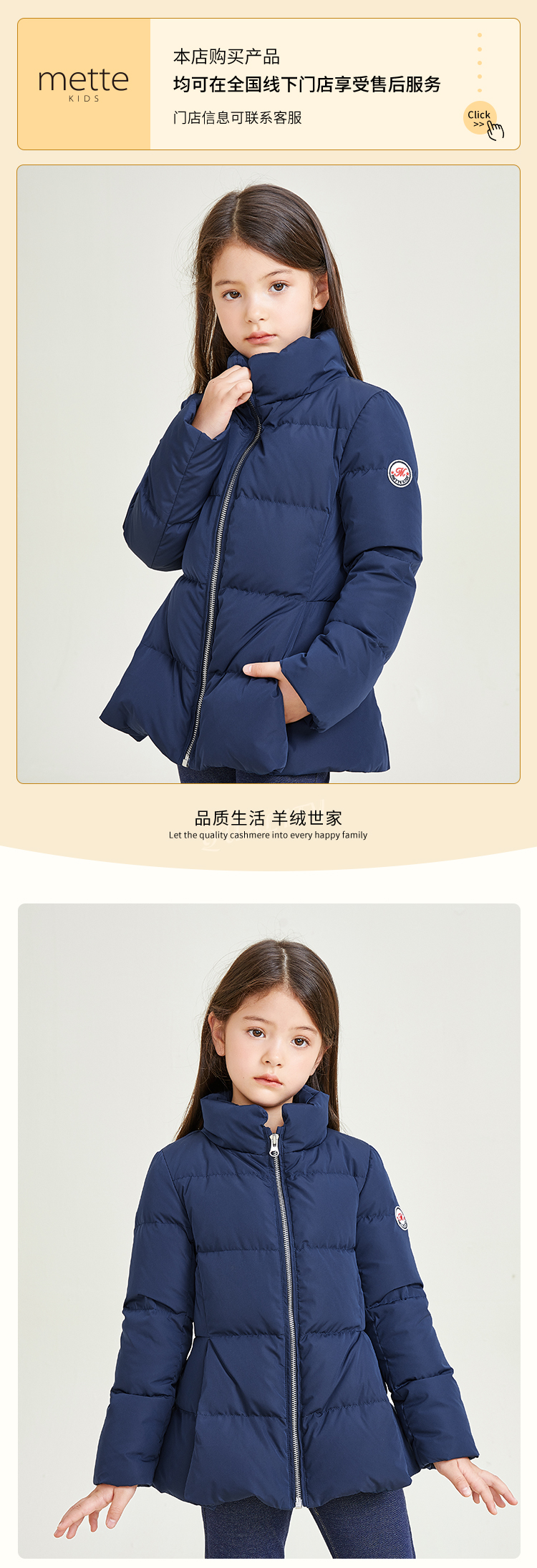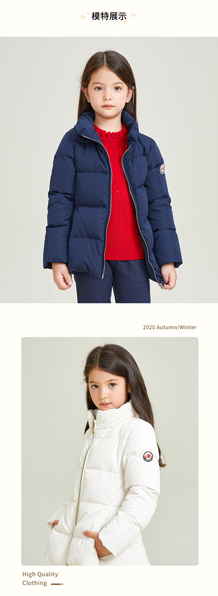 METTE童装立领90白鹅绒羽绒服2020秋冬中大童女宝中长款保暖外套