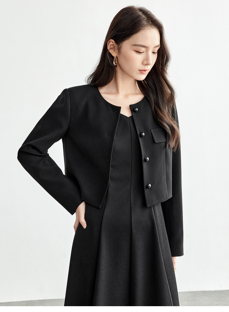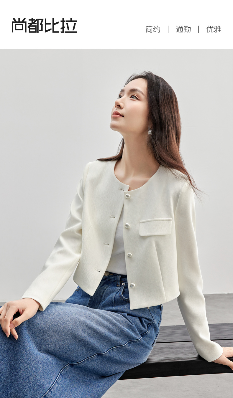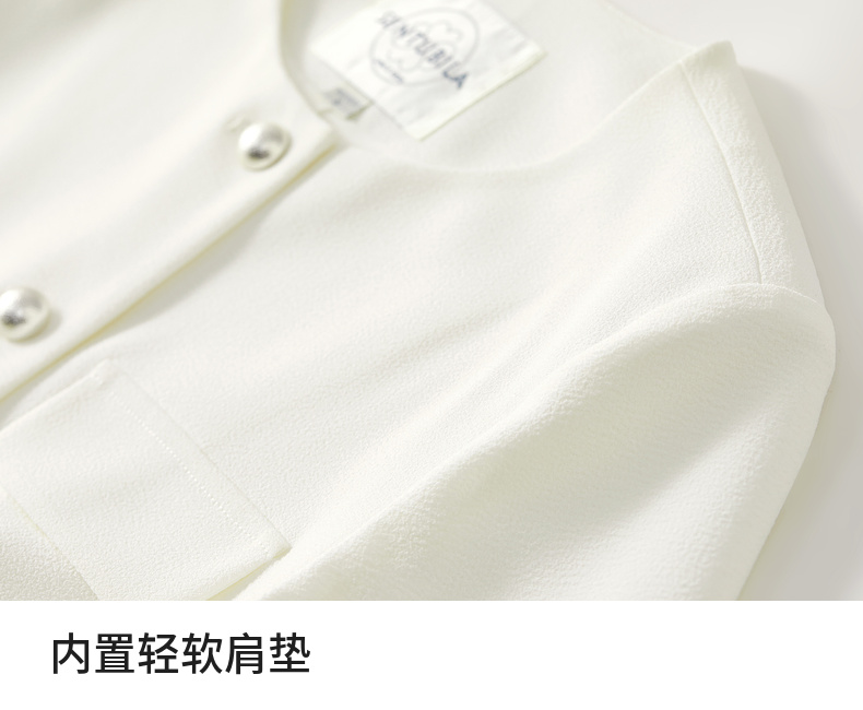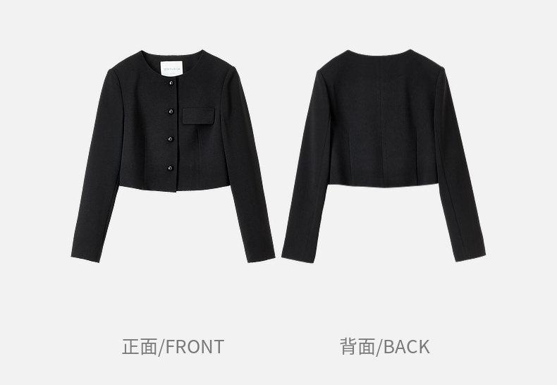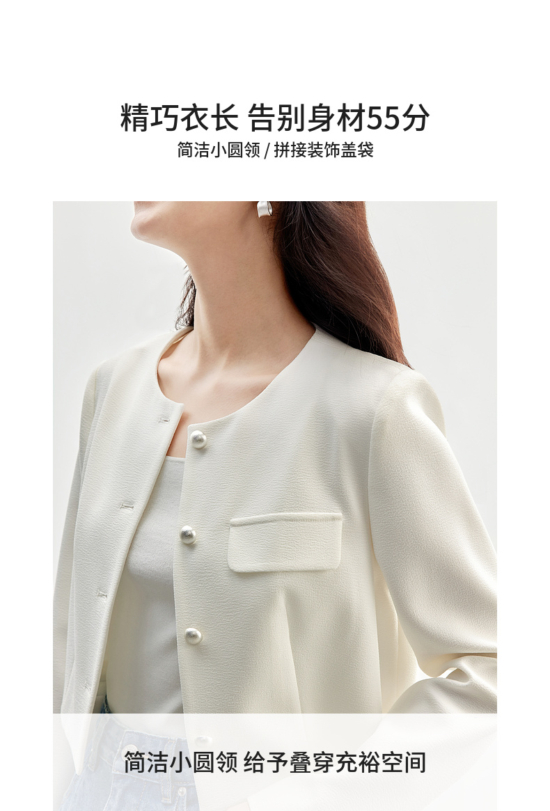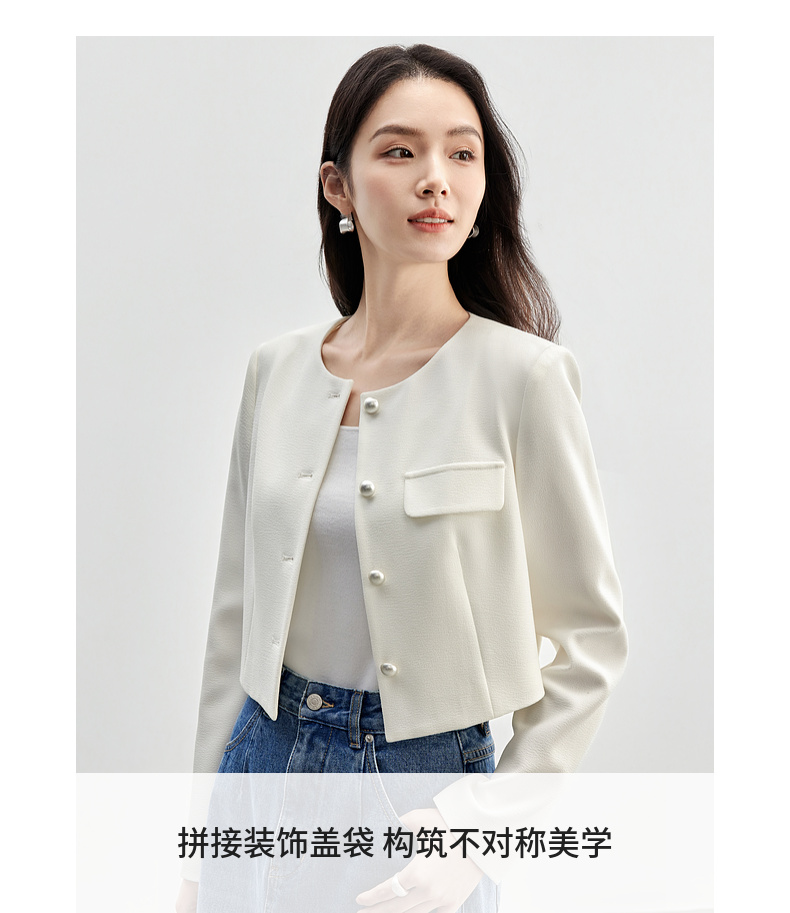 【内购】时尚通勤圆领小香风外套正肩单排扣拼接装饰袋显瘦开衫上衣-151W58264