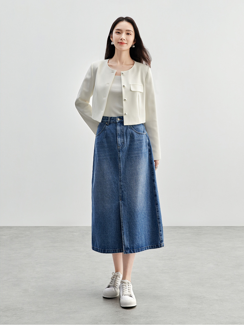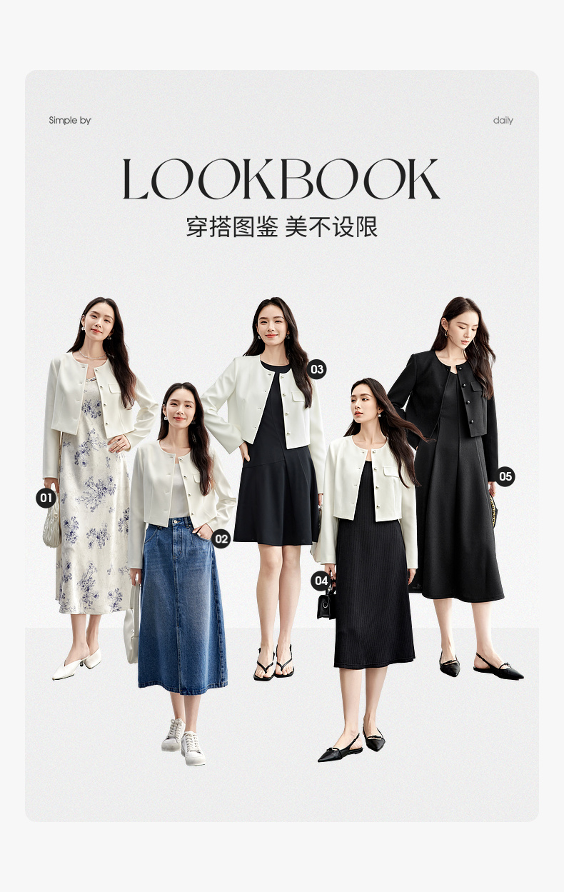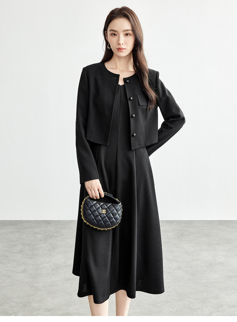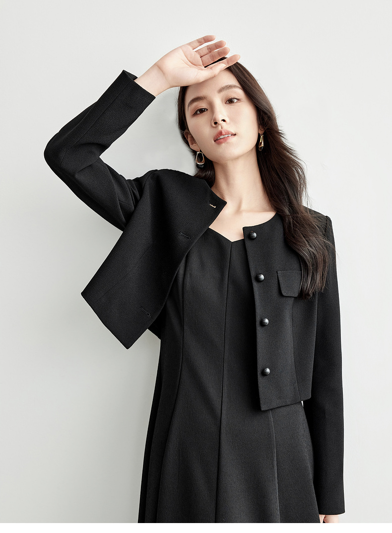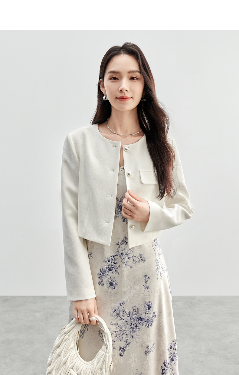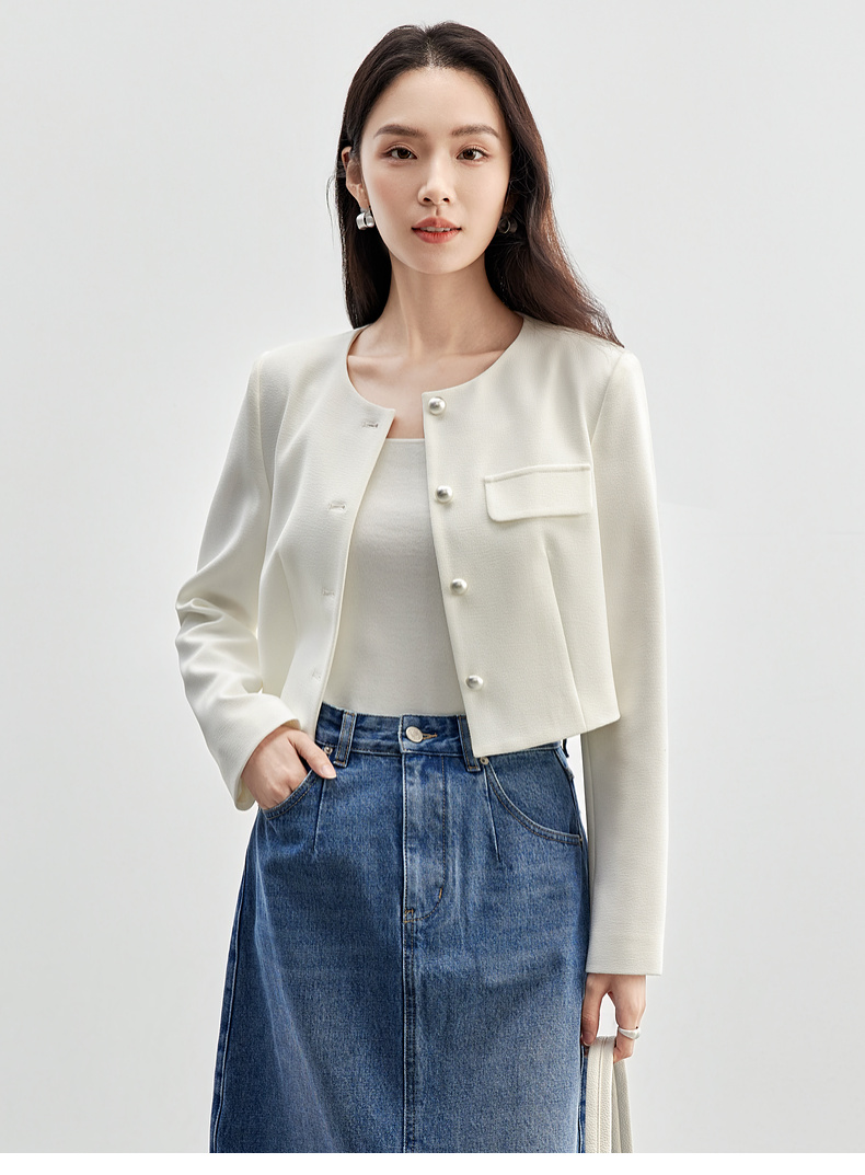 【内购】时尚通勤圆领小香风外套正肩单排扣拼接装饰袋显瘦开衫上衣-151W58264