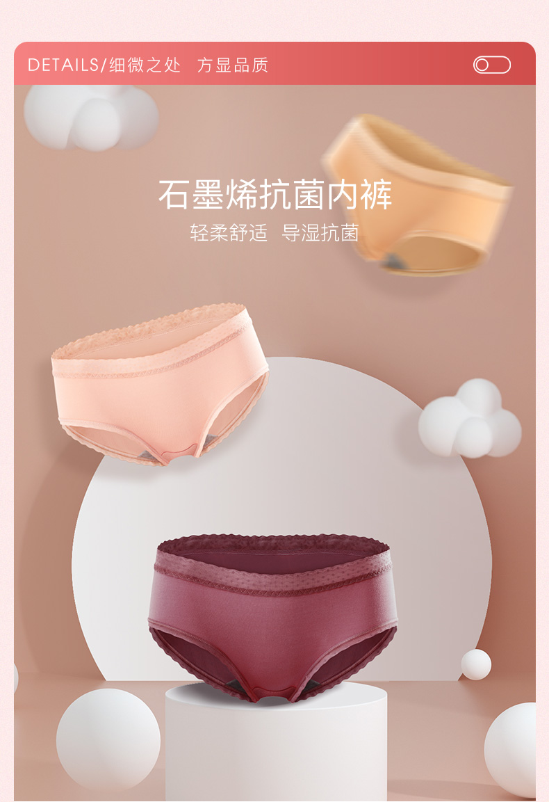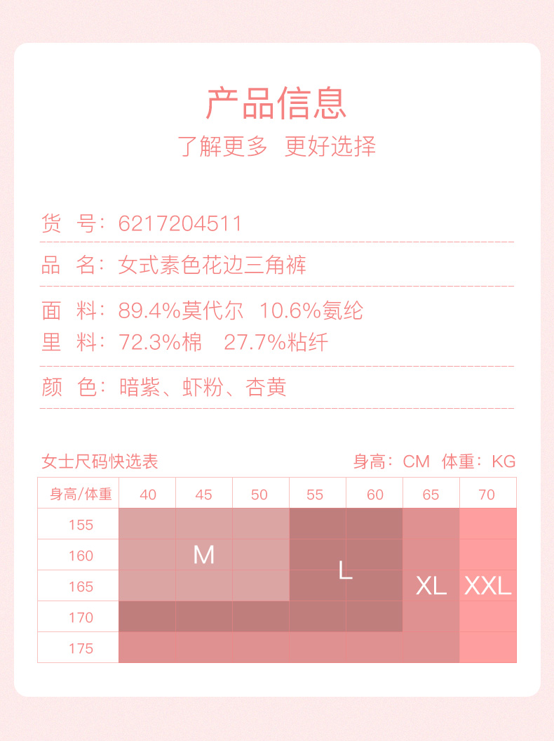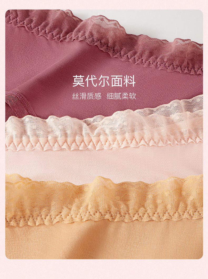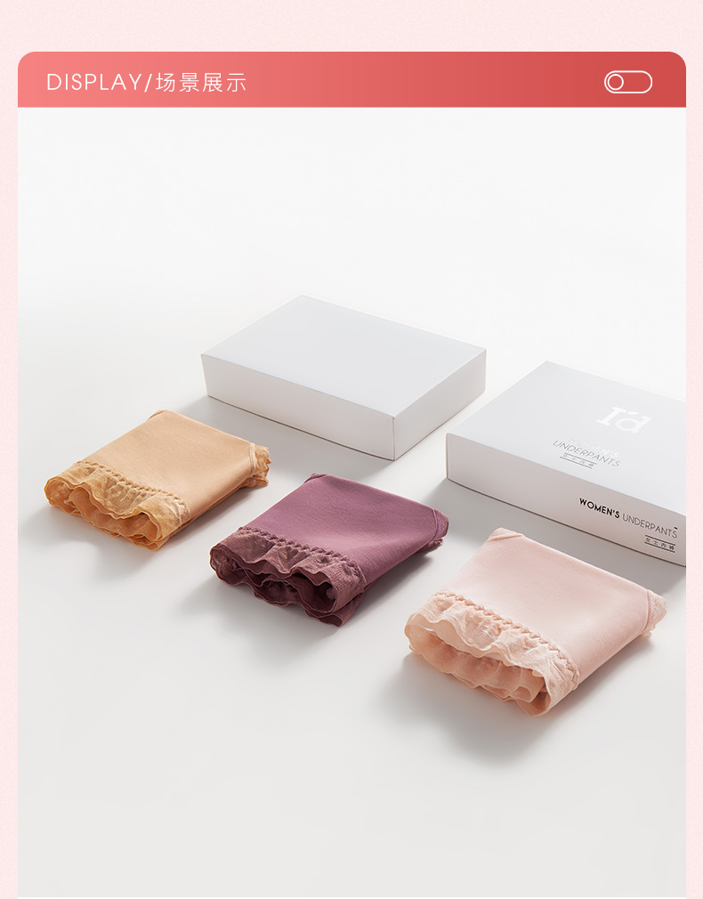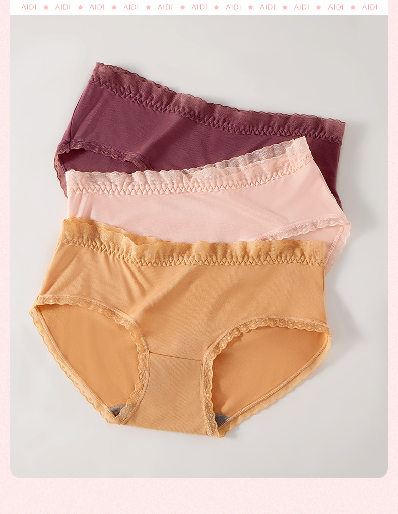 【少女内裤】I‘d爱帝女士中腰蕾丝莫代尔3条装