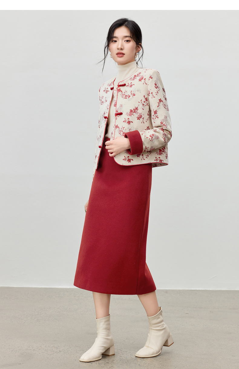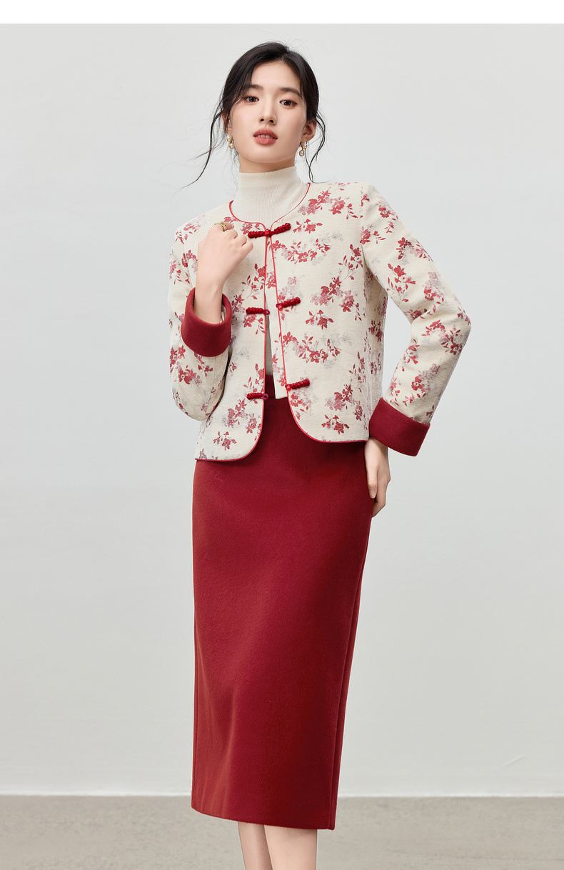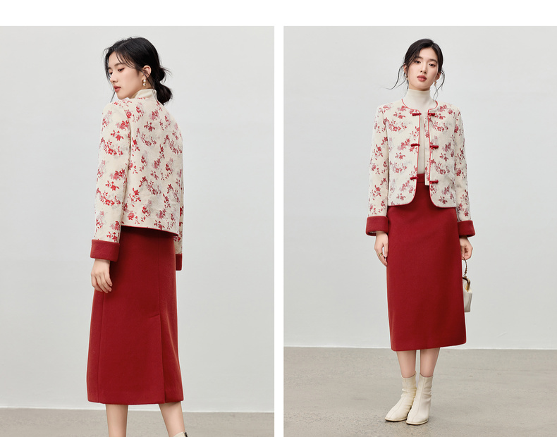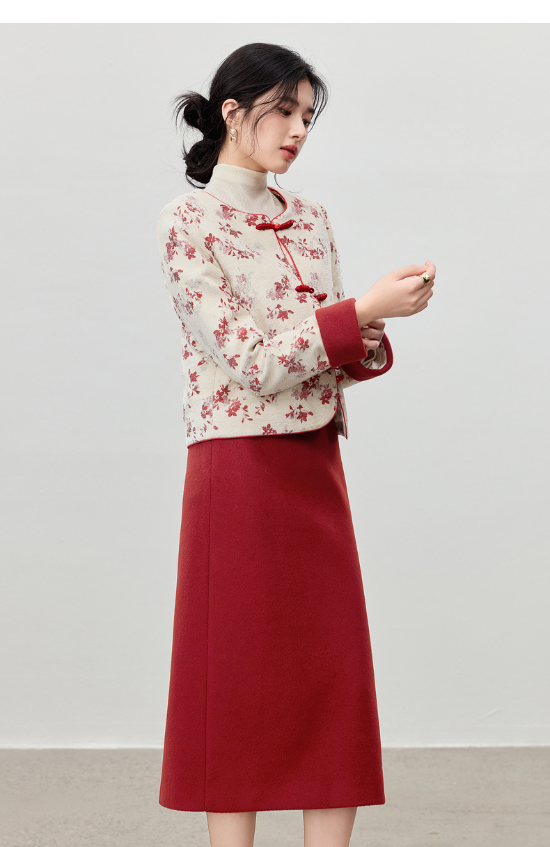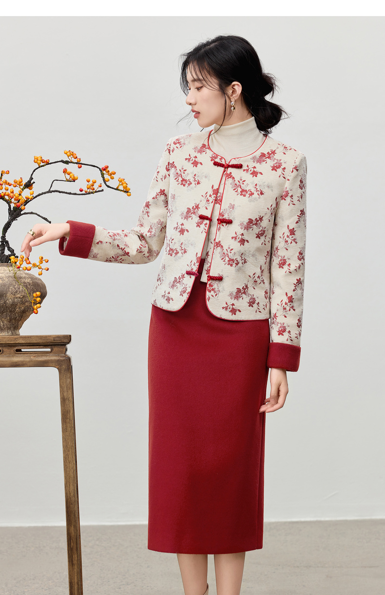 【内购】【免搭配套装】优雅国风盘扣垫肩保暖夹棉雪尼尔外套&A字半身裙-154ZB3993