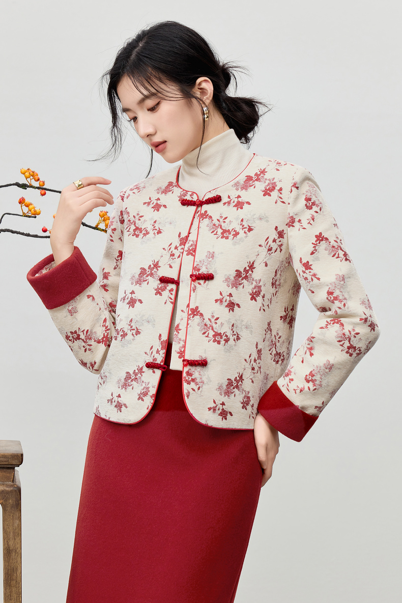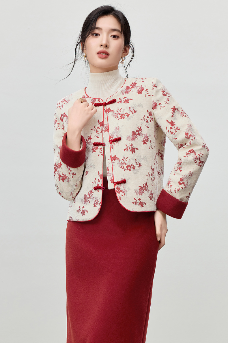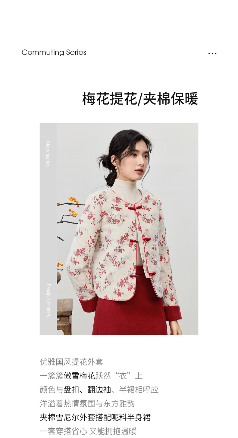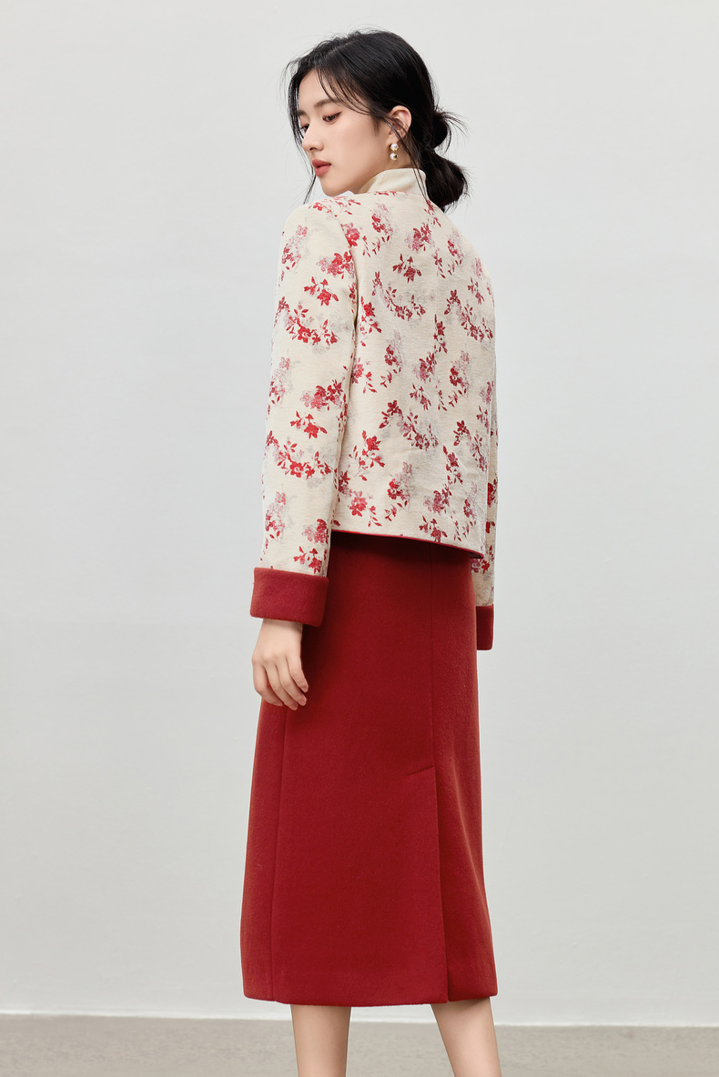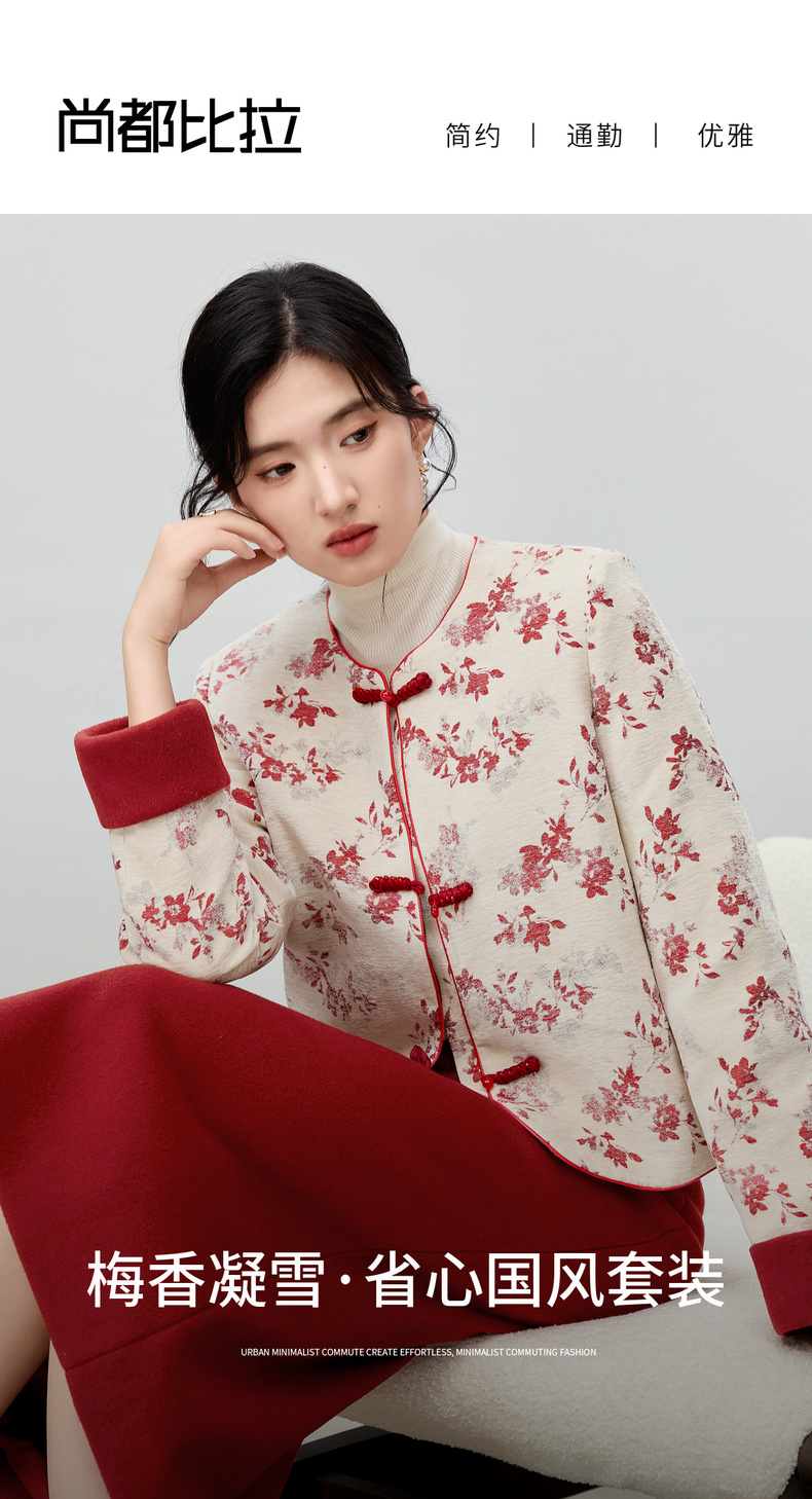 【内购】【免搭配套装】优雅国风盘扣垫肩保暖夹棉雪尼尔外套&A字半身裙-154ZB3993