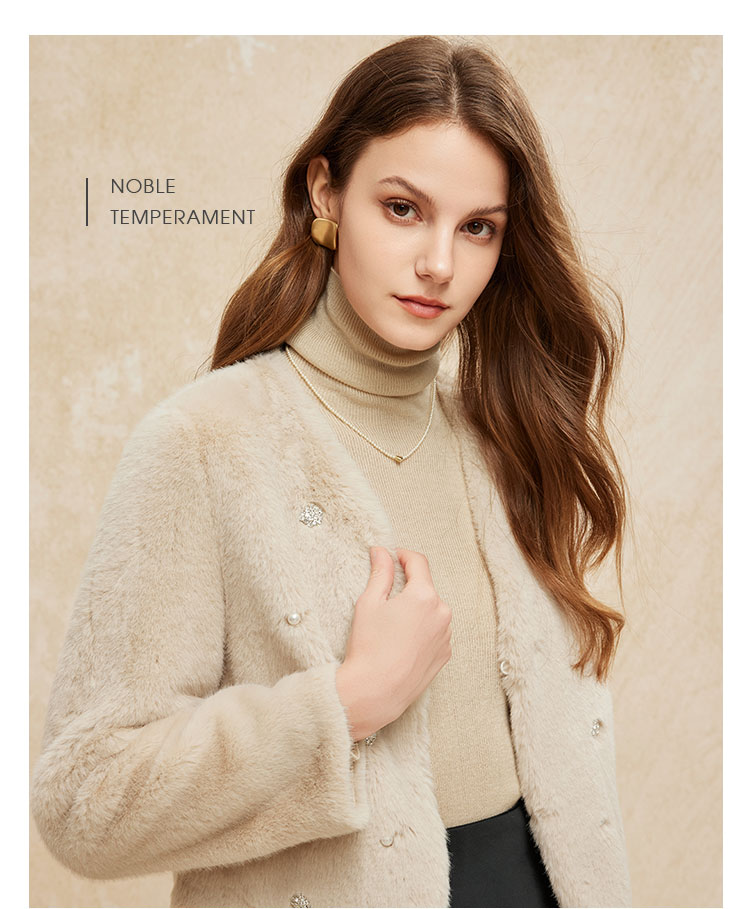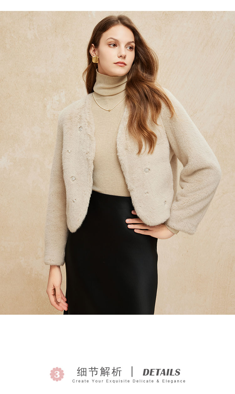 PH105斯尔丽24冬季新款复古皮毛一体颗粒绒剪绒小香风时尚仿皮草外套