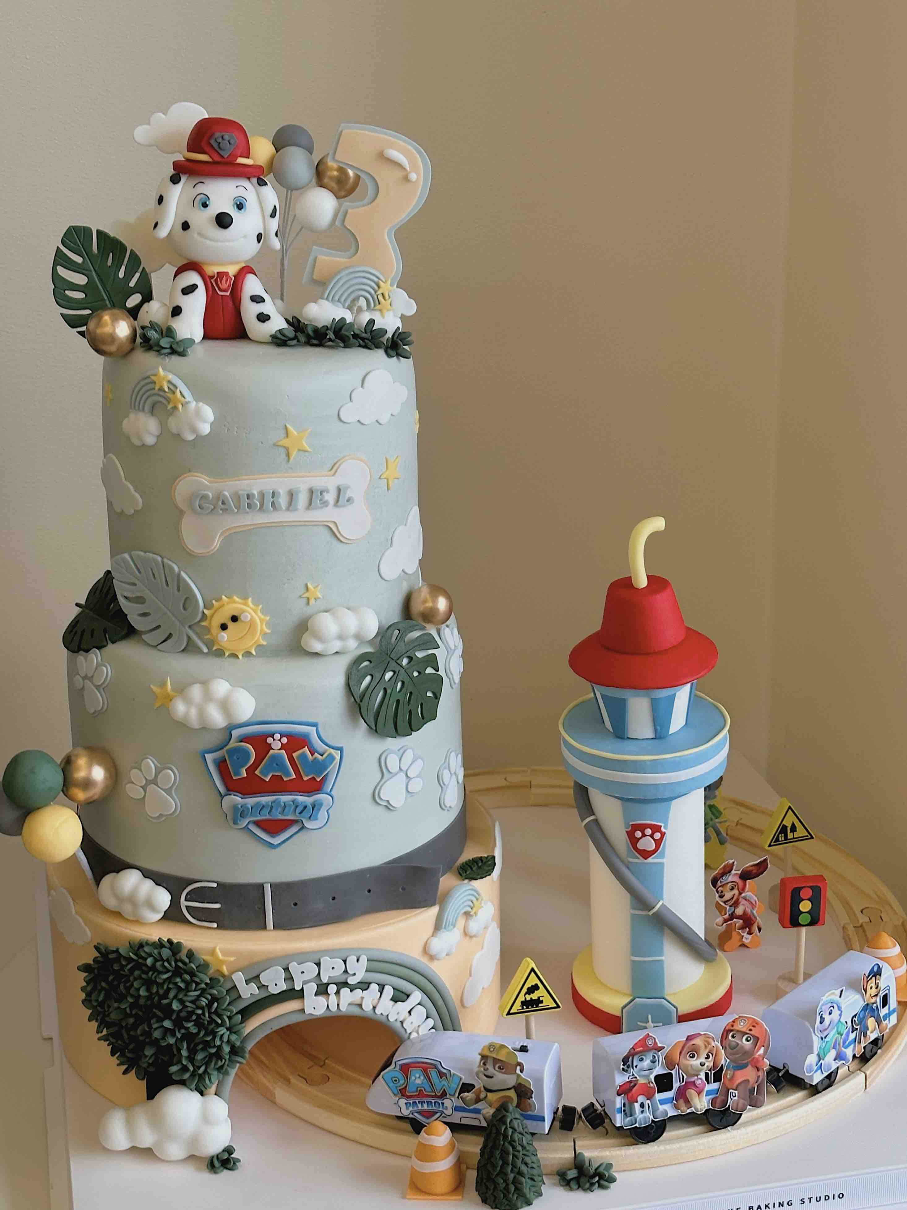 汪汪队×隧道小火车(奶油霜抹面,最底下隧道层为不可食用泡沫)