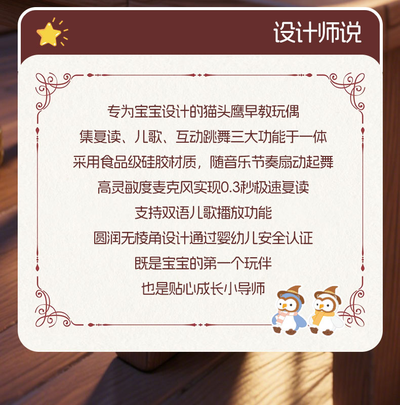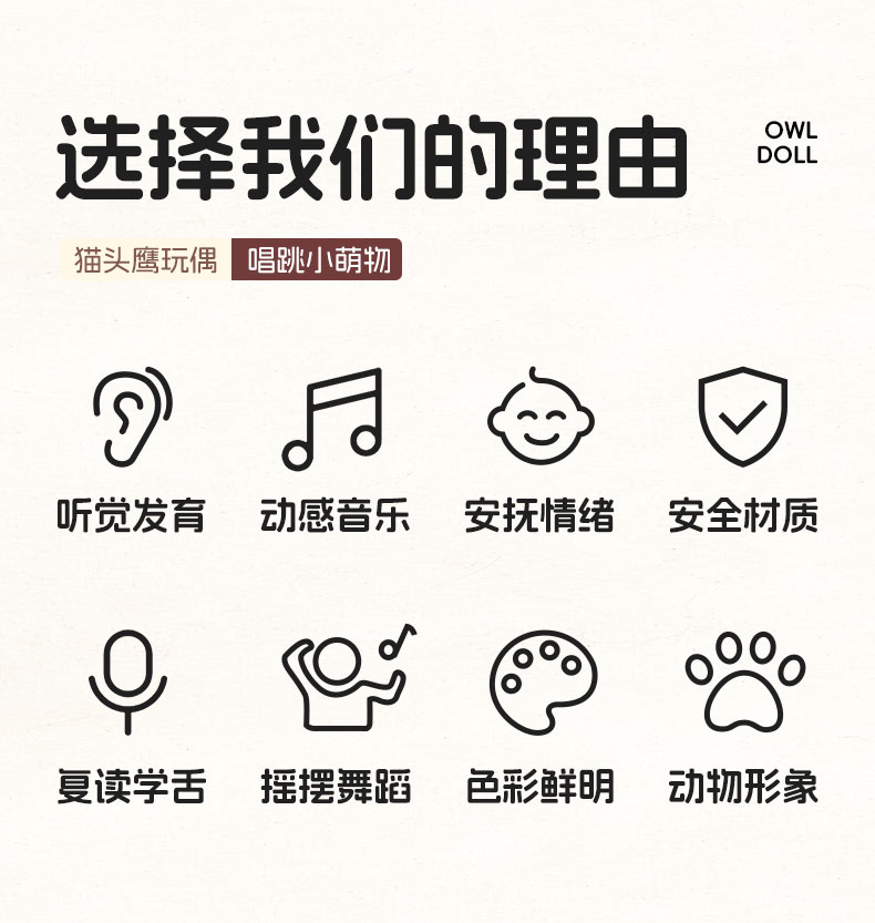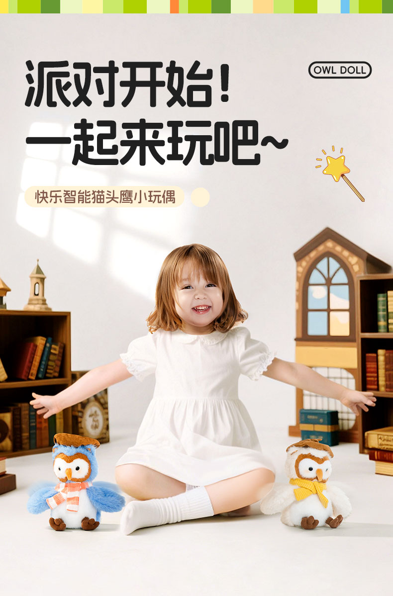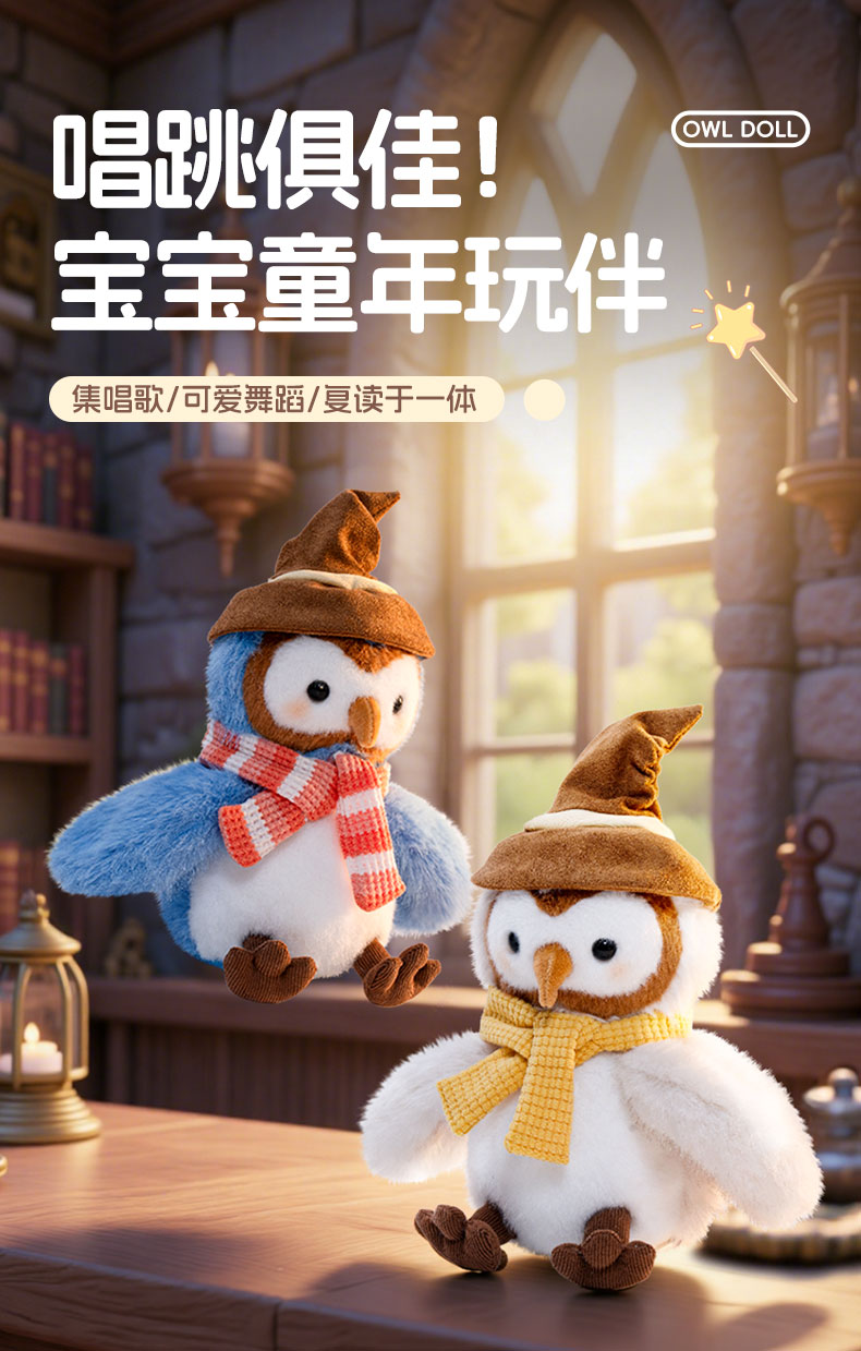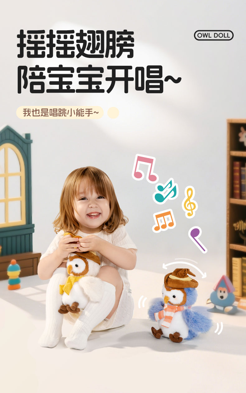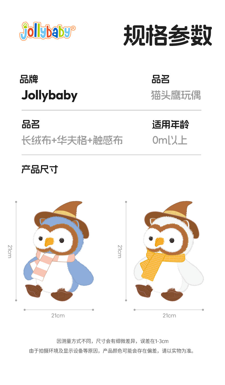 jollybaby猫头鹰安抚玩偶婴幼儿毛绒玩具宝宝早教启蒙学说话0-1岁