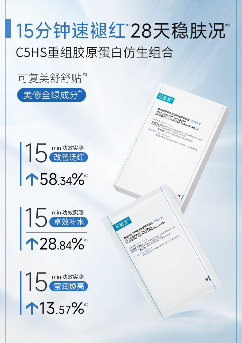 可复美舒舒贴重组胶原蛋白精华面膜补水保湿舒缓女强韧屏障5片/盒