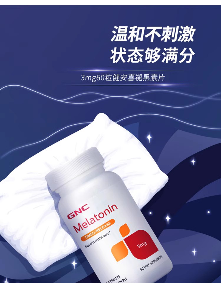 保税GNC健安喜褪黑素片melatonin睡眠退黑素片成人中老年人适用 美国原装