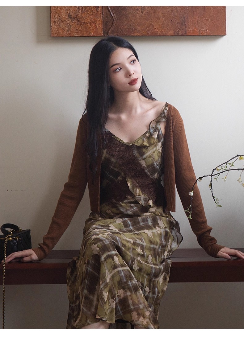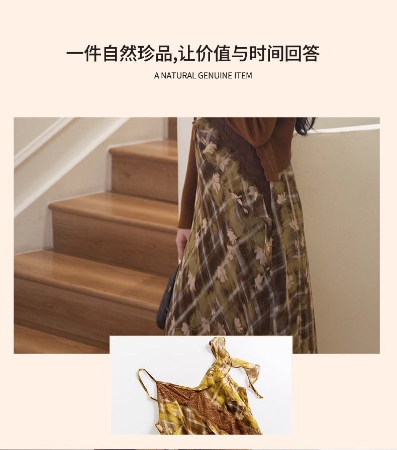 【门店同款】ENJOY秋季“浮光织影”蝴蝶格纹长裙 164246736