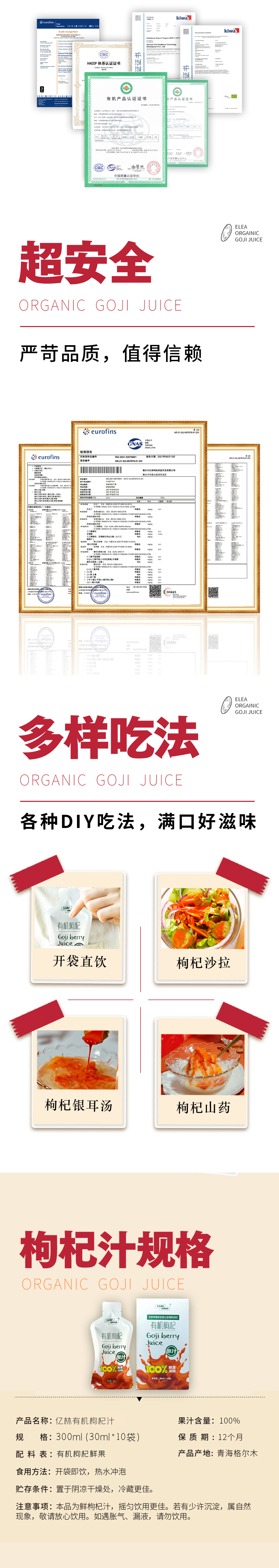 亿林有机枸杞原汁(30ML*10袋)/盒