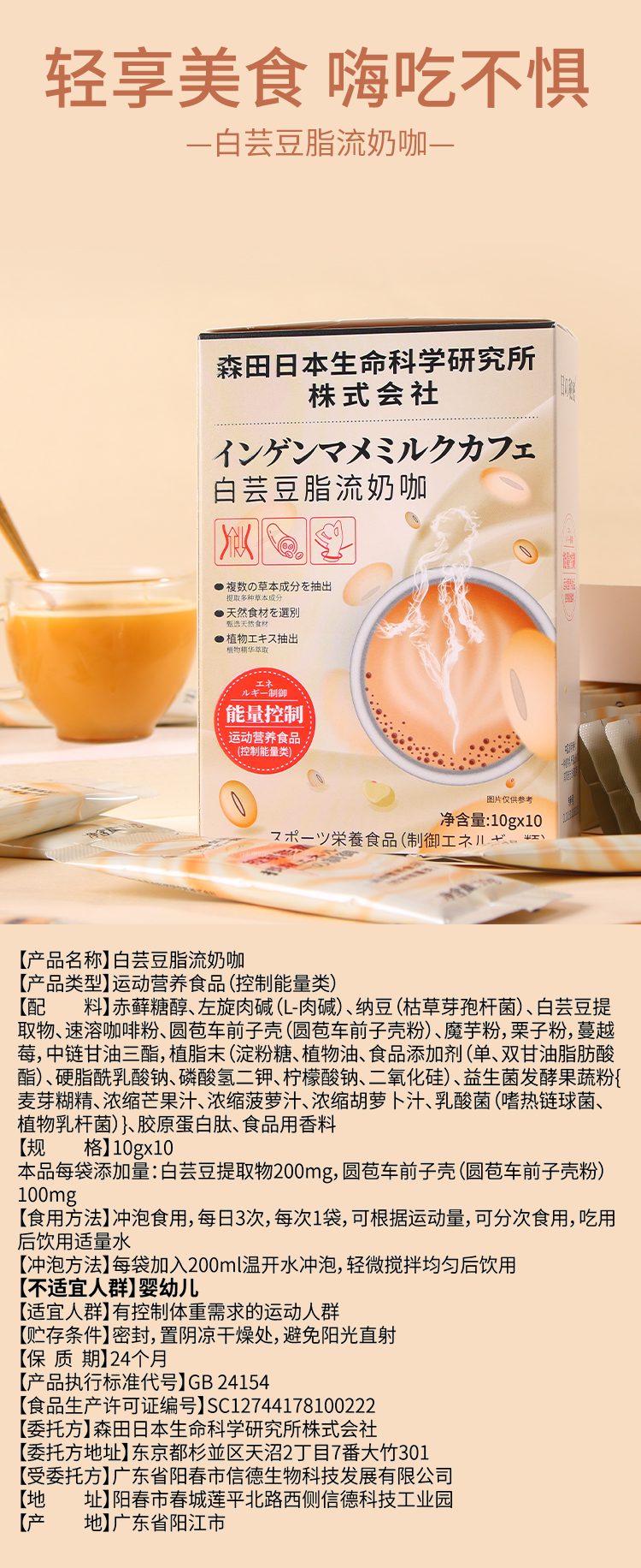 【日本研发】日本森田白芸豆脂流奶咖 牛奶咖啡阻断剂 10g*10包