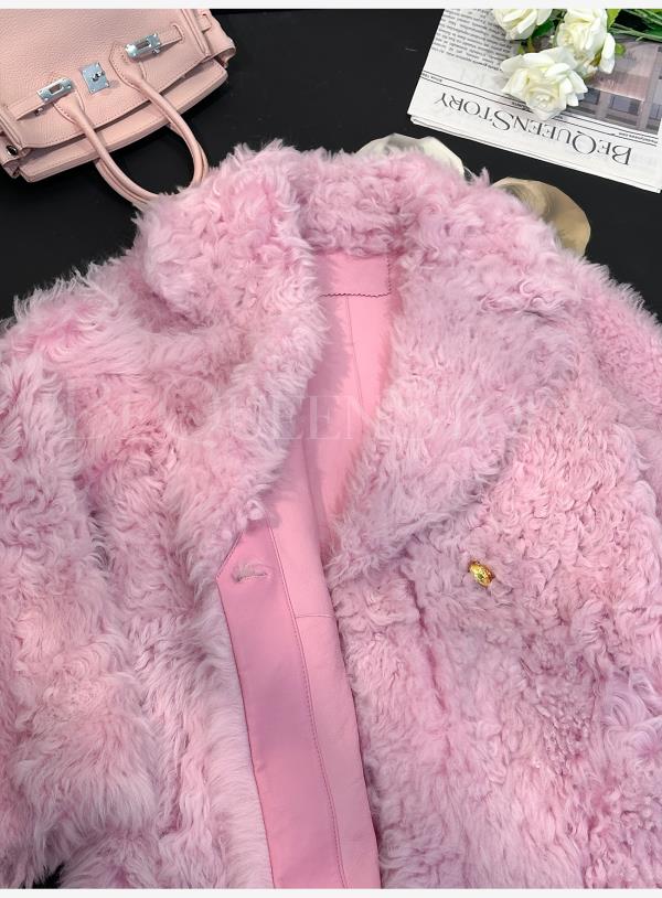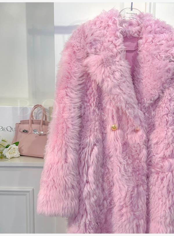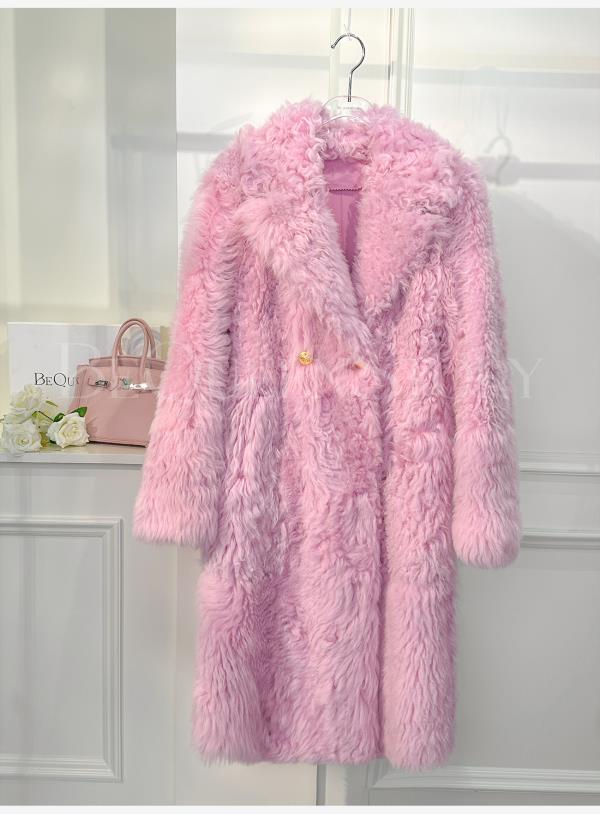 余潇潇红人上新【人间芍药】进口托卡羊皮毛一体草草宽松长款外套