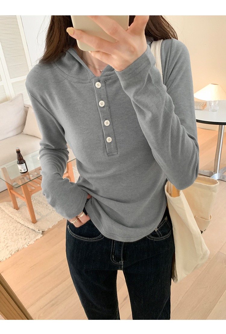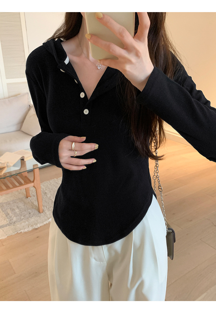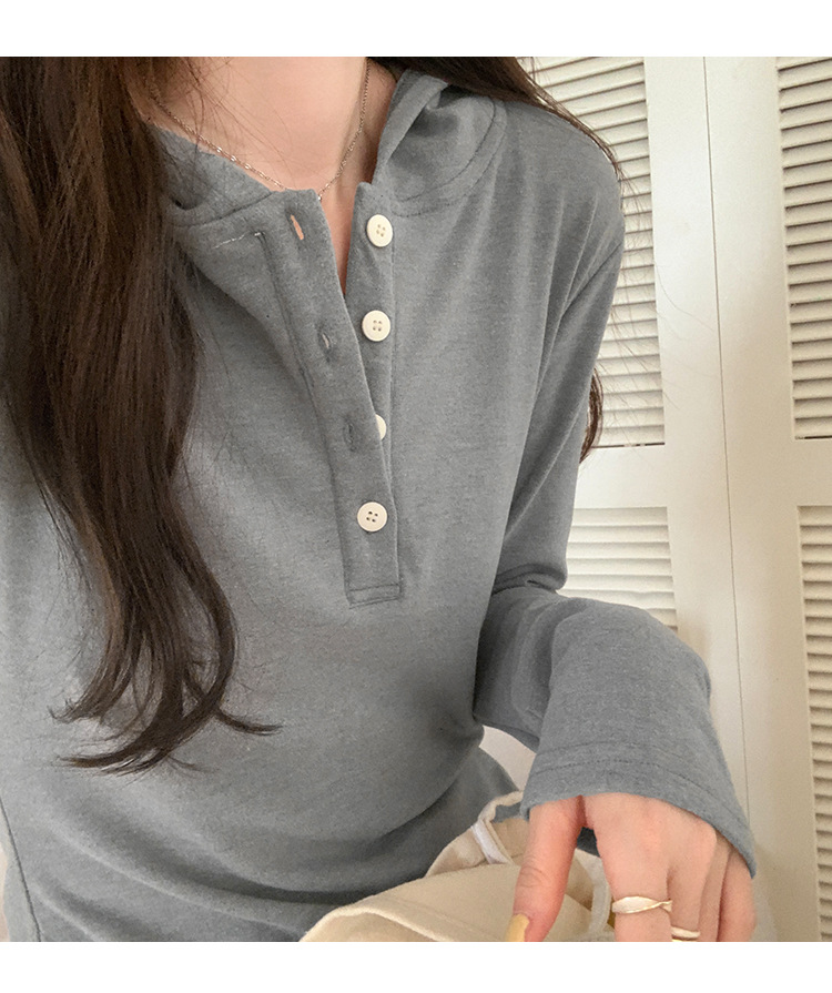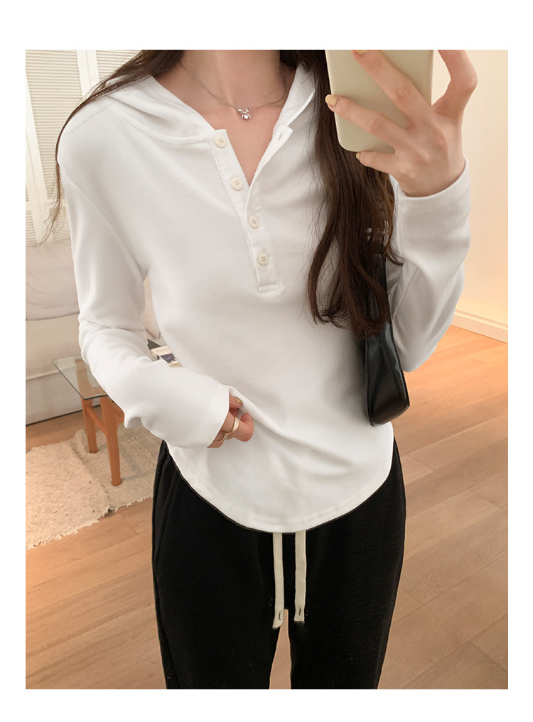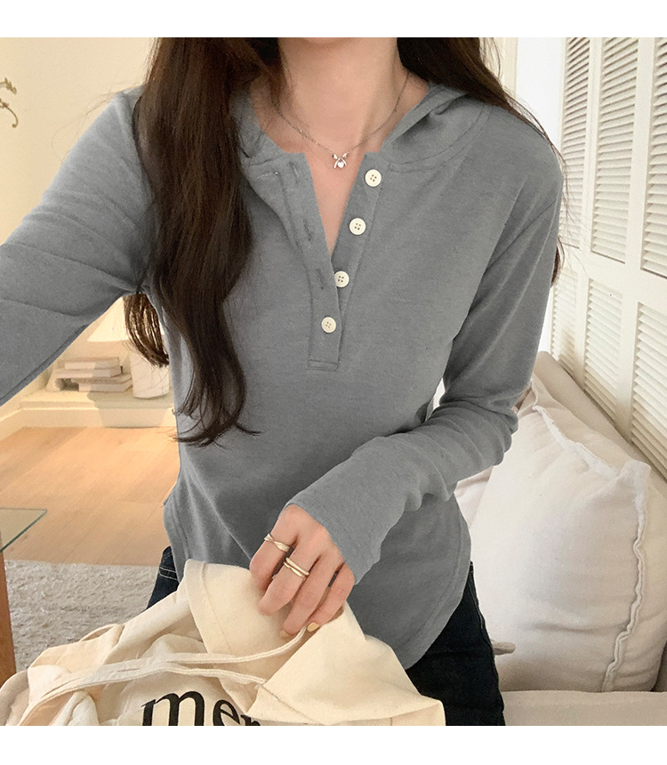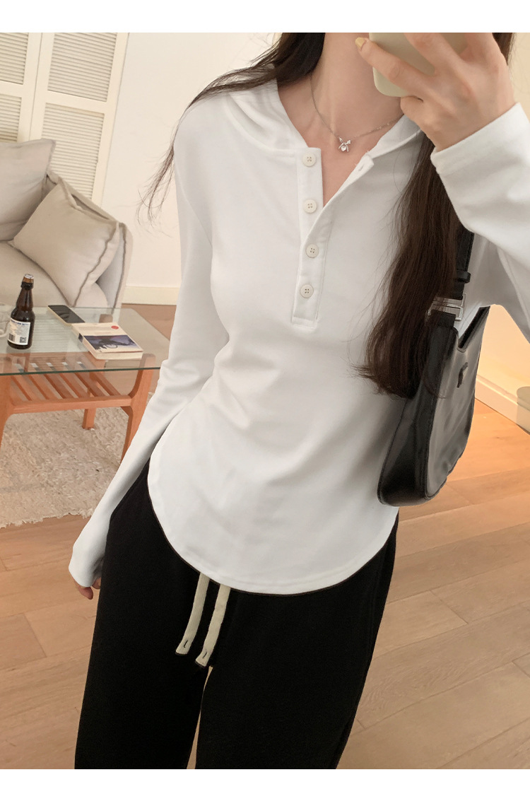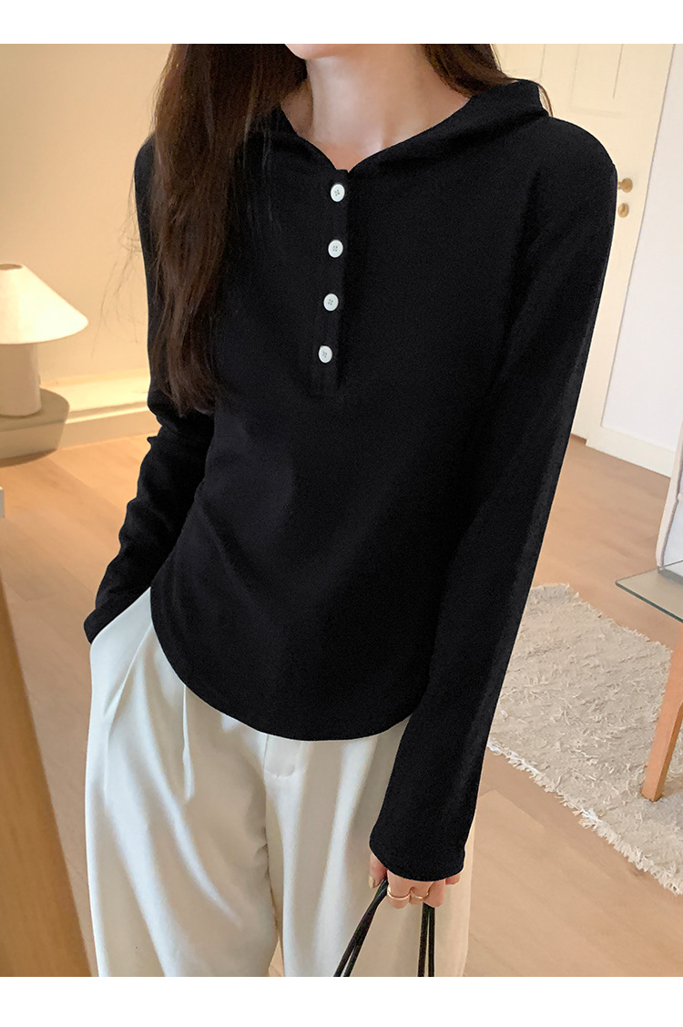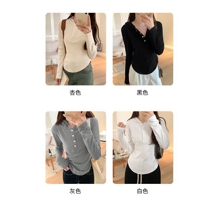 【设计感小众连帽长袖T恤】秋季新款纯色百搭打底衫内搭上衣 简约修身可外穿