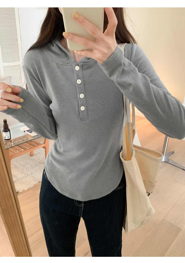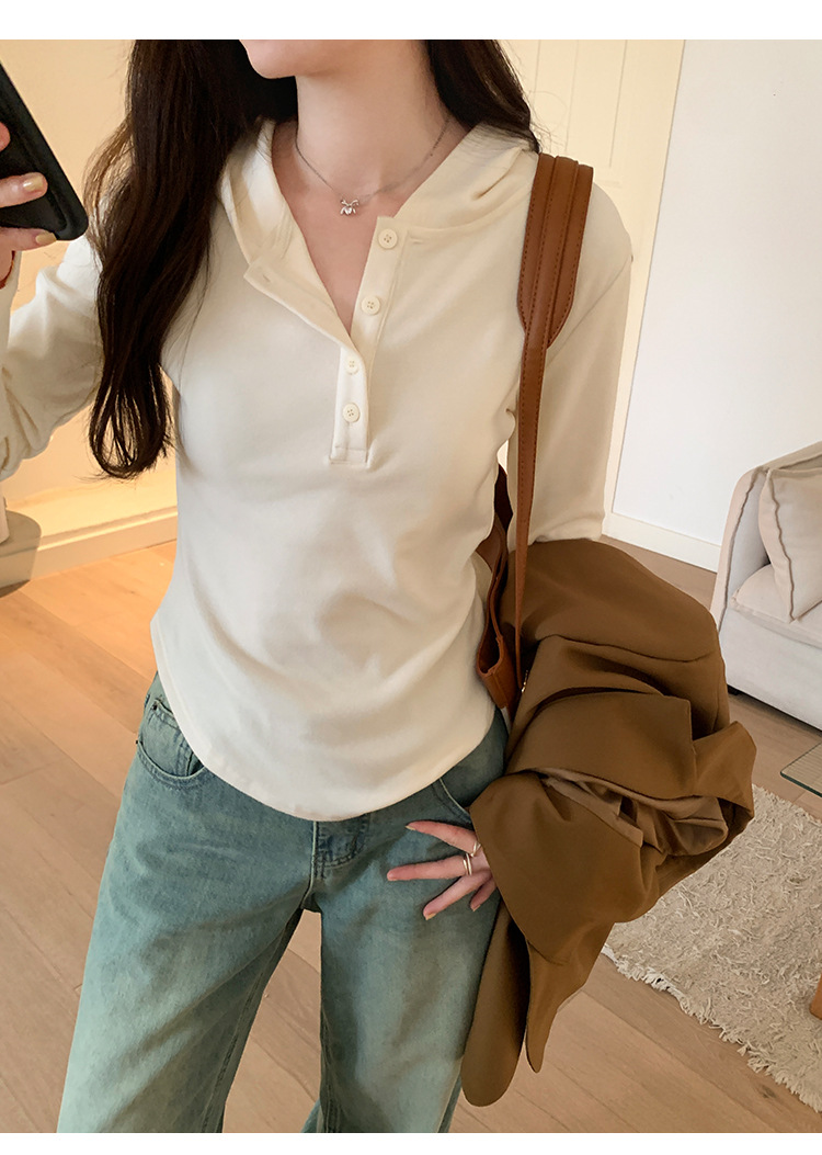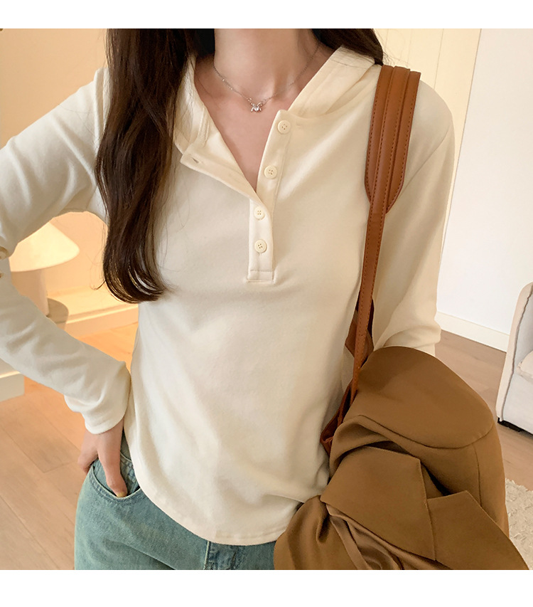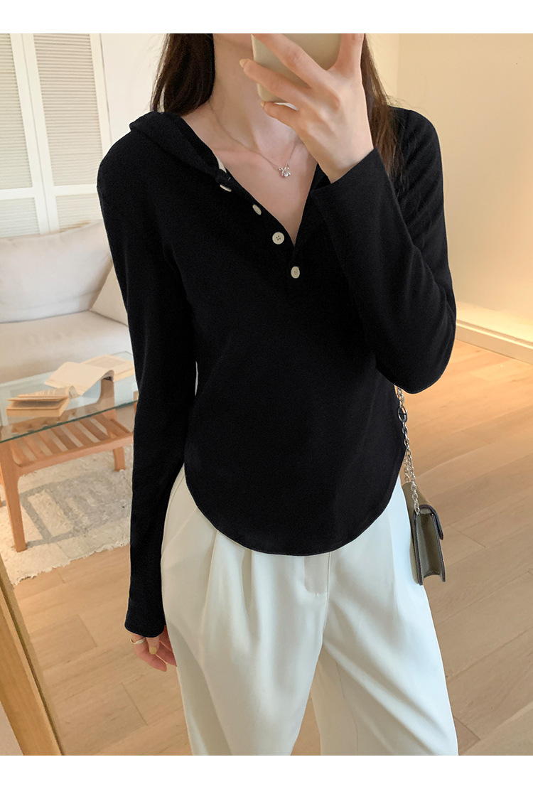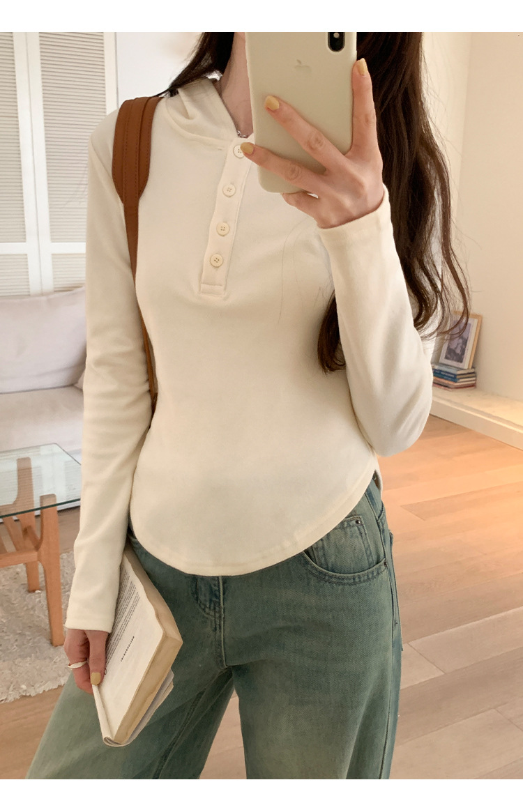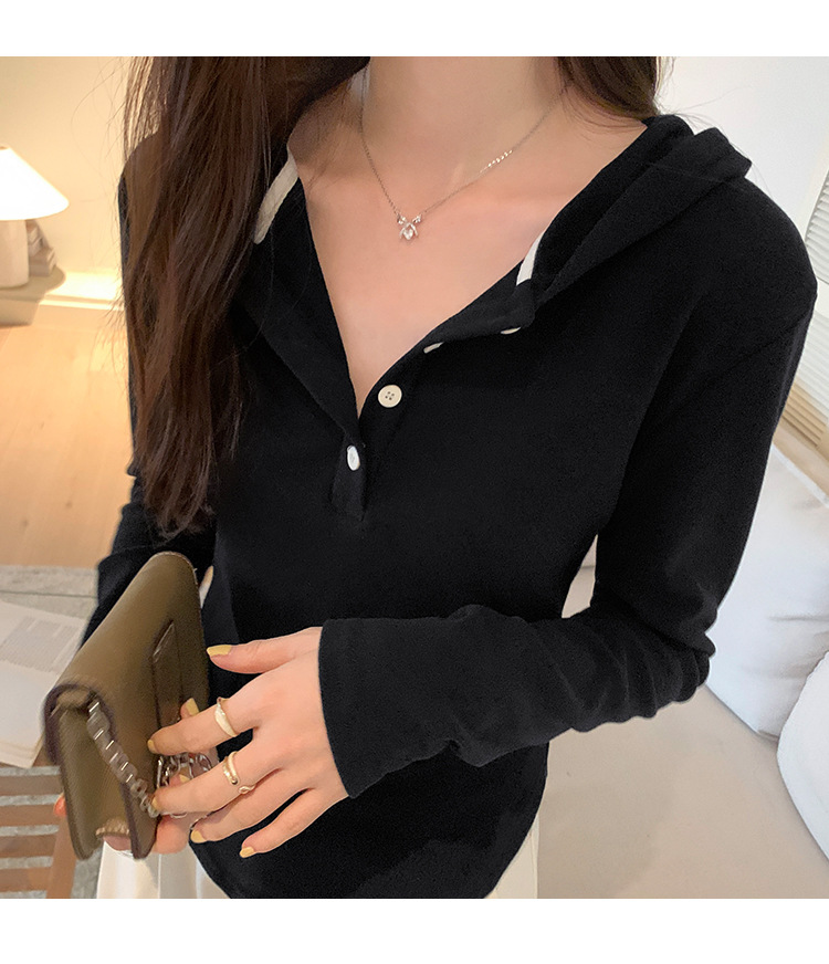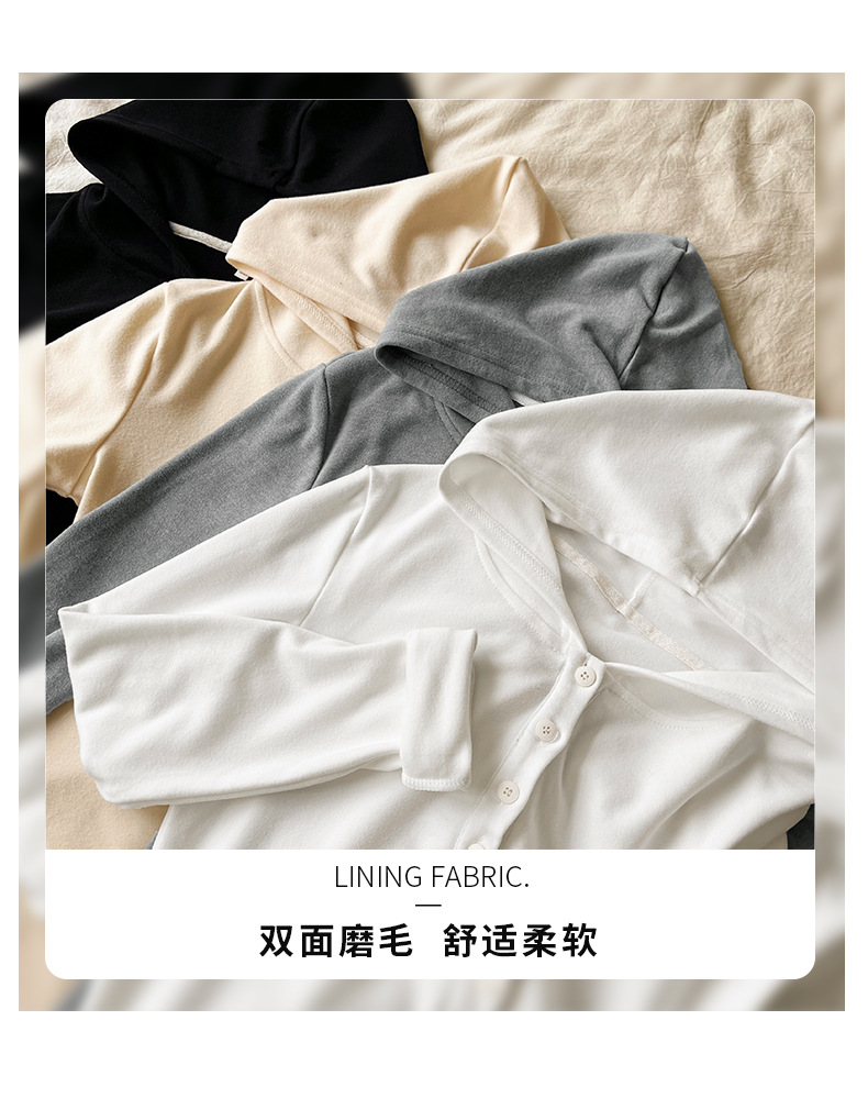 【设计感小众连帽长袖T恤】秋季新款纯色百搭打底衫内搭上衣 简约修身可外穿