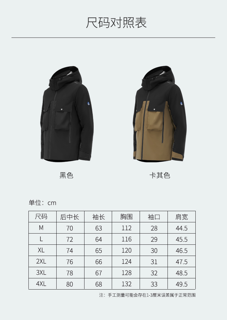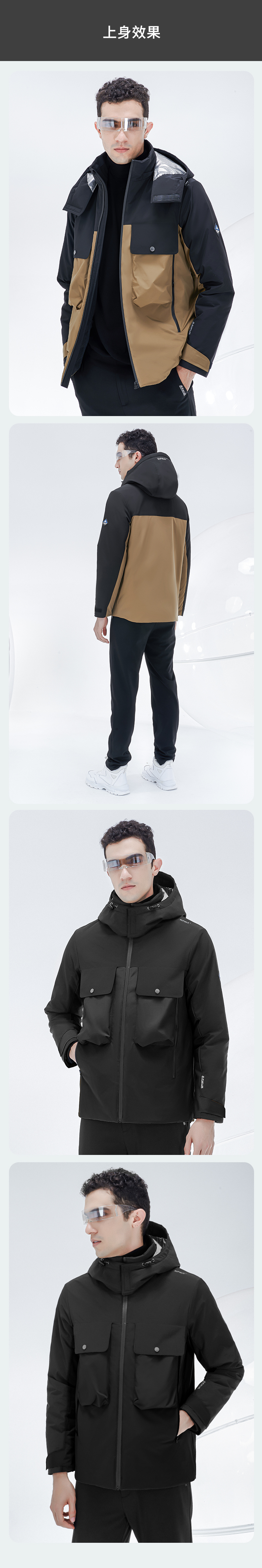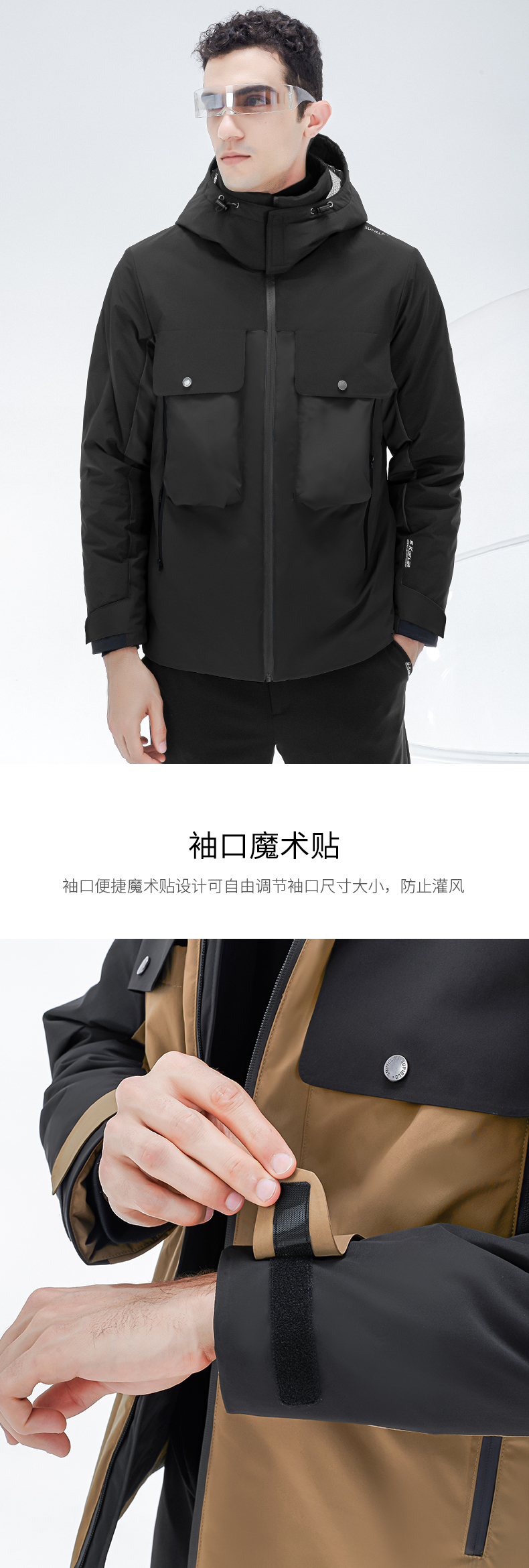 Supield素湃气凝胶抗寒服拼色大口袋复古工装款短款冬季外套A355