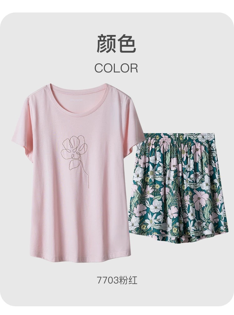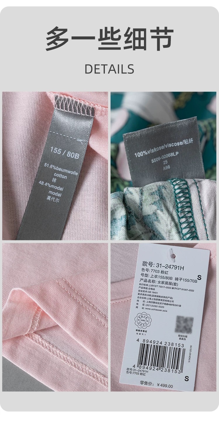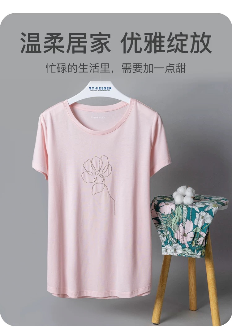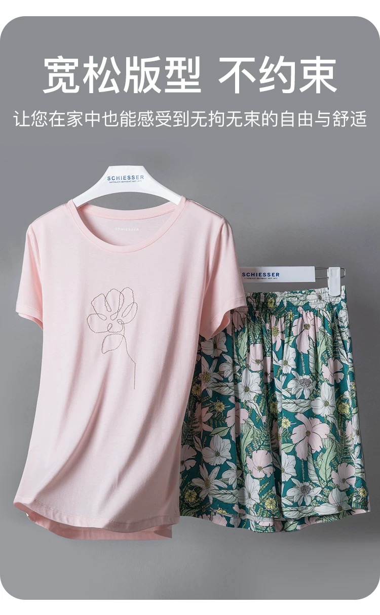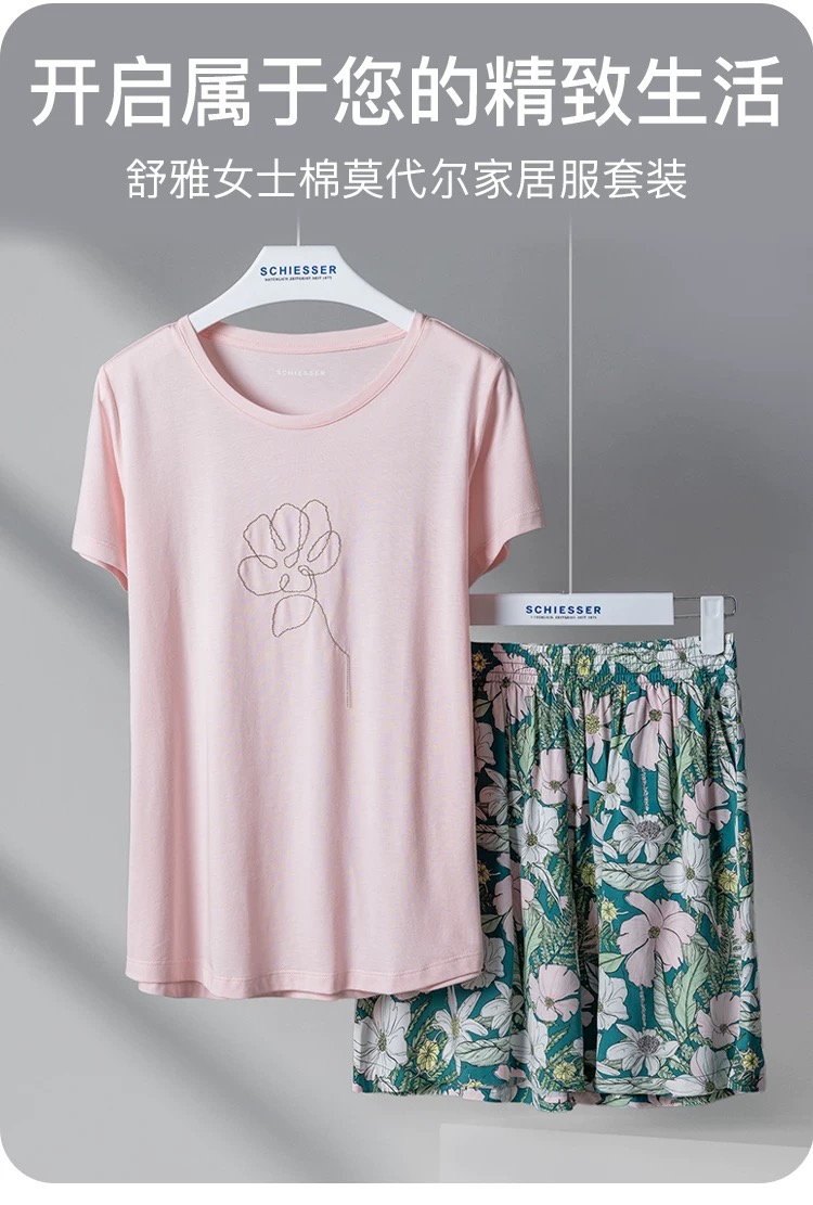 【粘纤梭织】SCHIESSER德国舒雅女士短袖短裤上衣棉莫 裤子100%粘纤套装31/24791H