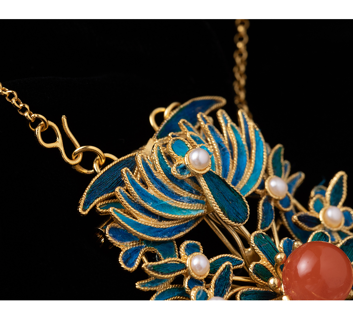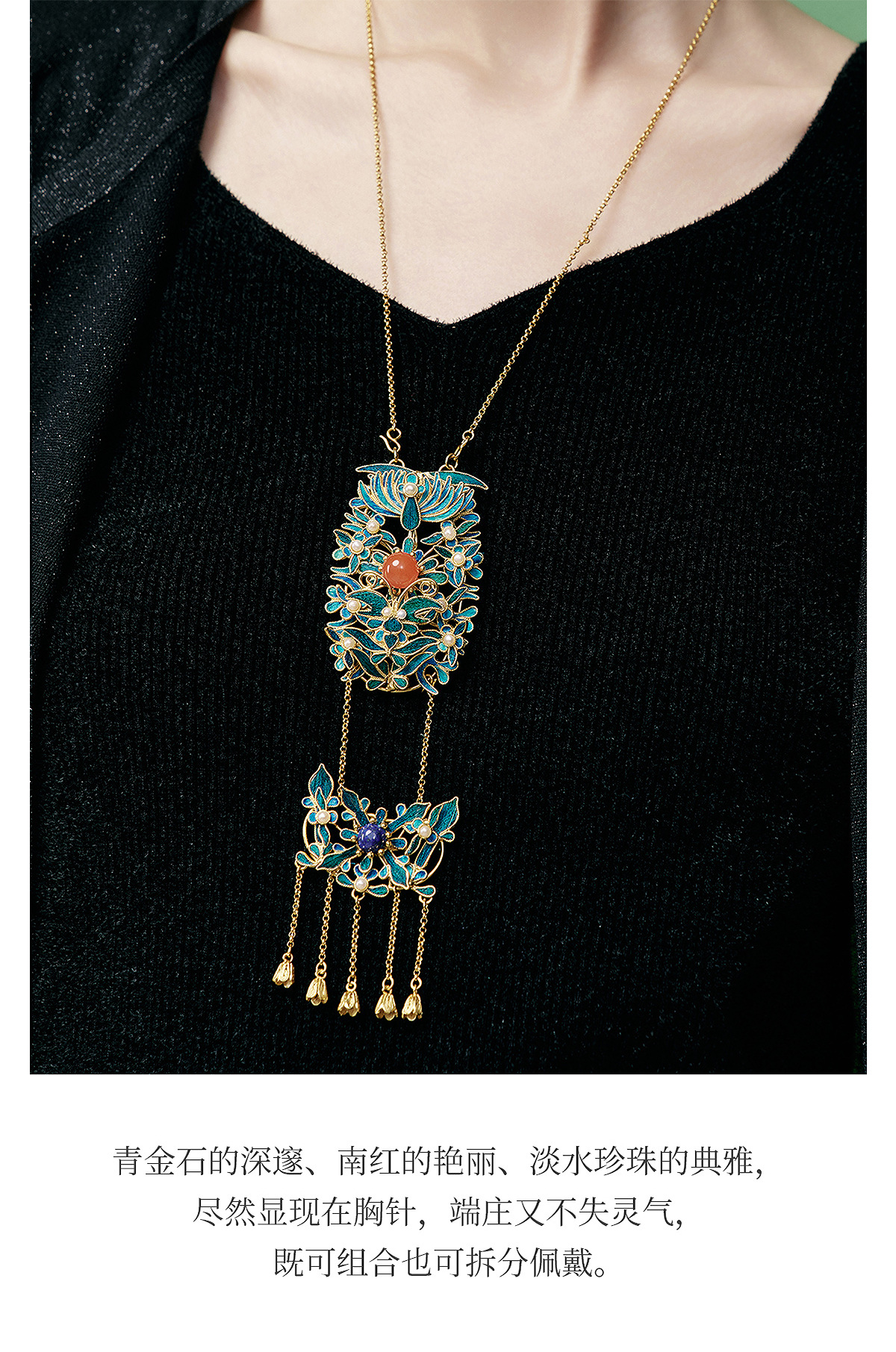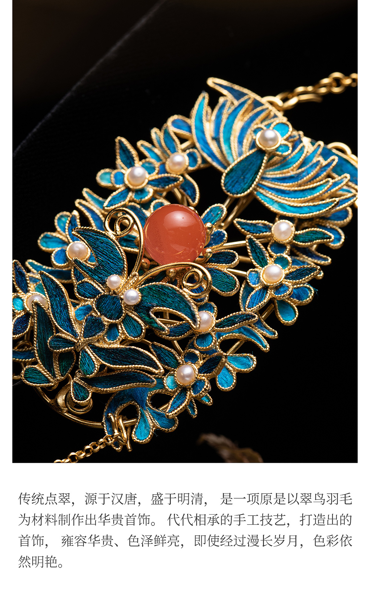 【林栖设计小店】孔雀羽毛胸针仿点翠复古优雅珍珠2025夏季新款流苏配饰女2952441