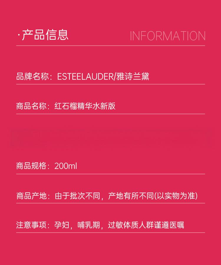 【跨境】EsteeLauder雅诗兰黛红石榴精华水新版200ml