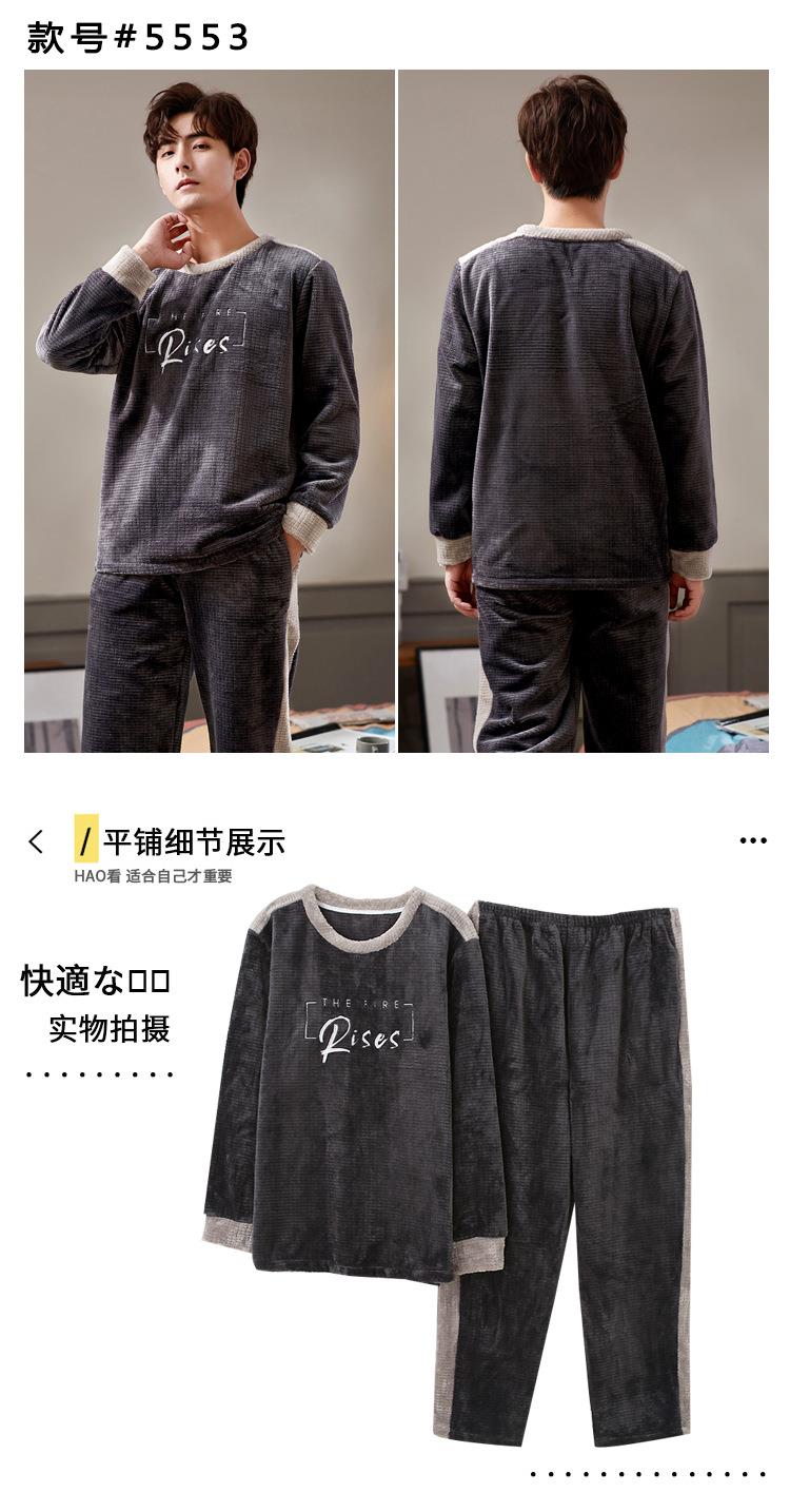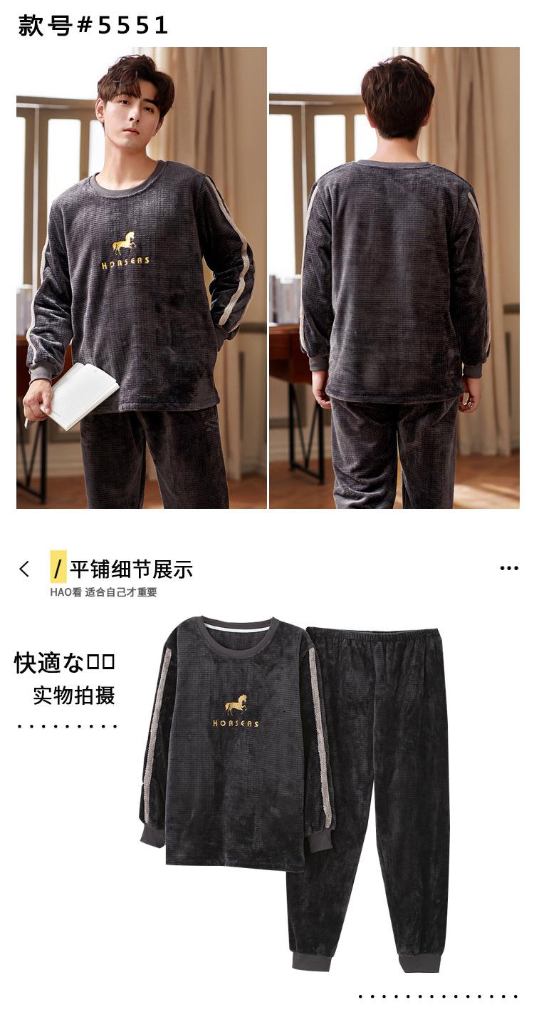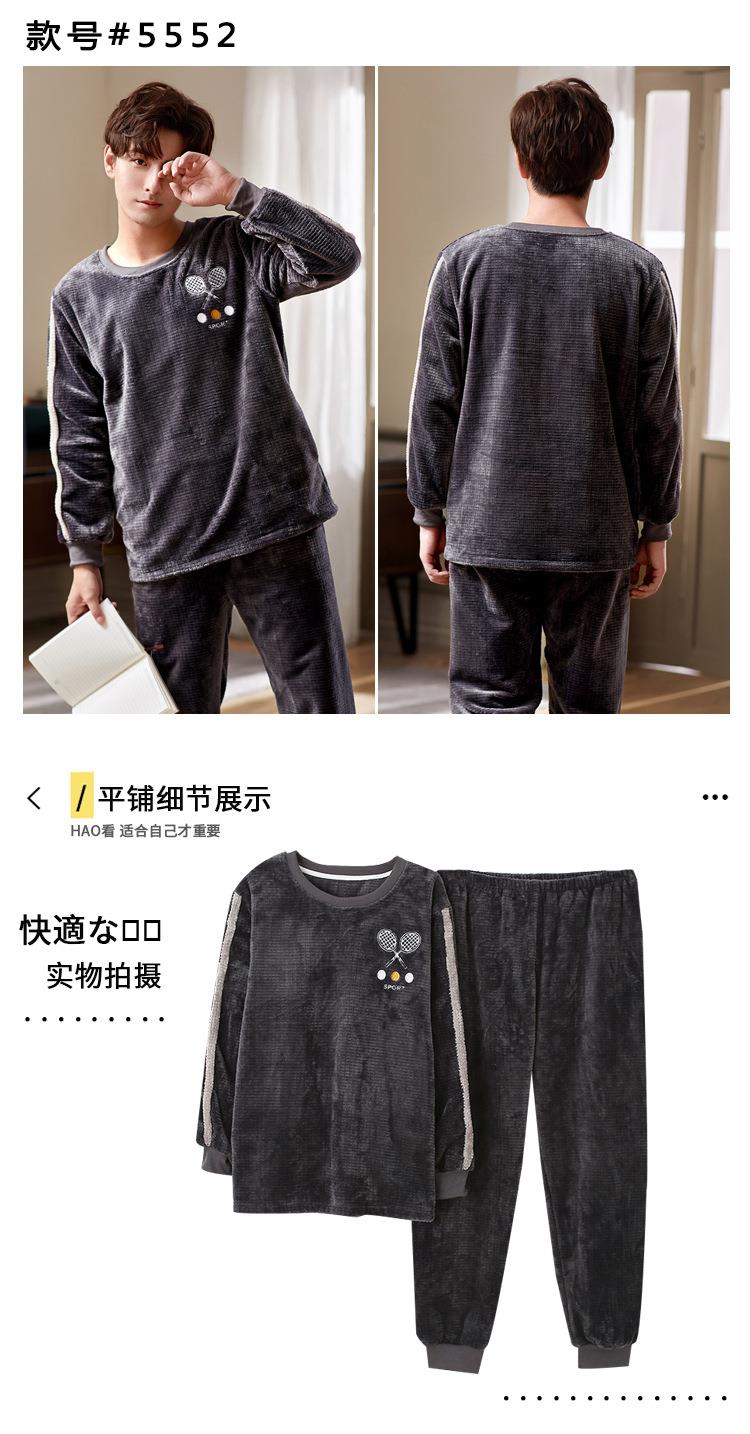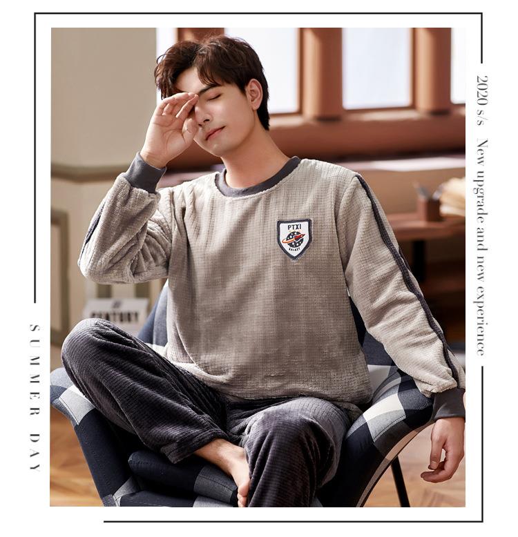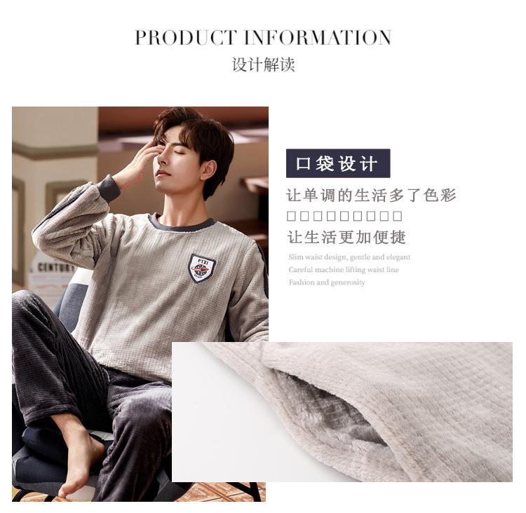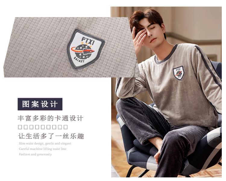 法兰绒男士睡衣冬季套装宽松大码加绒加厚保暖珊瑚绒可外穿家居服