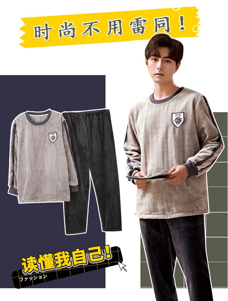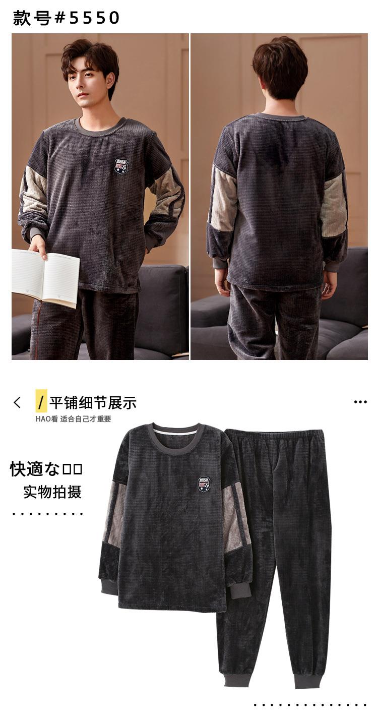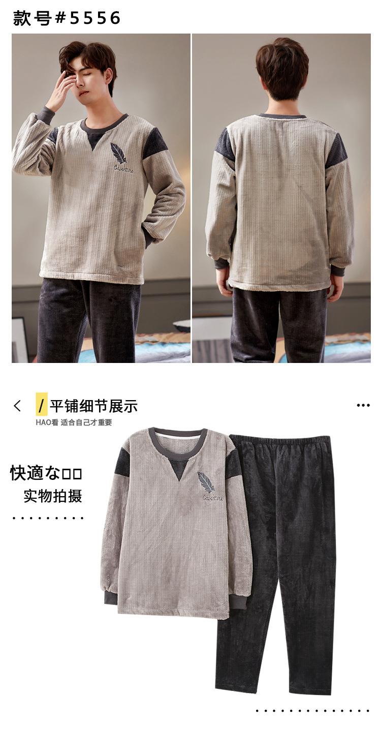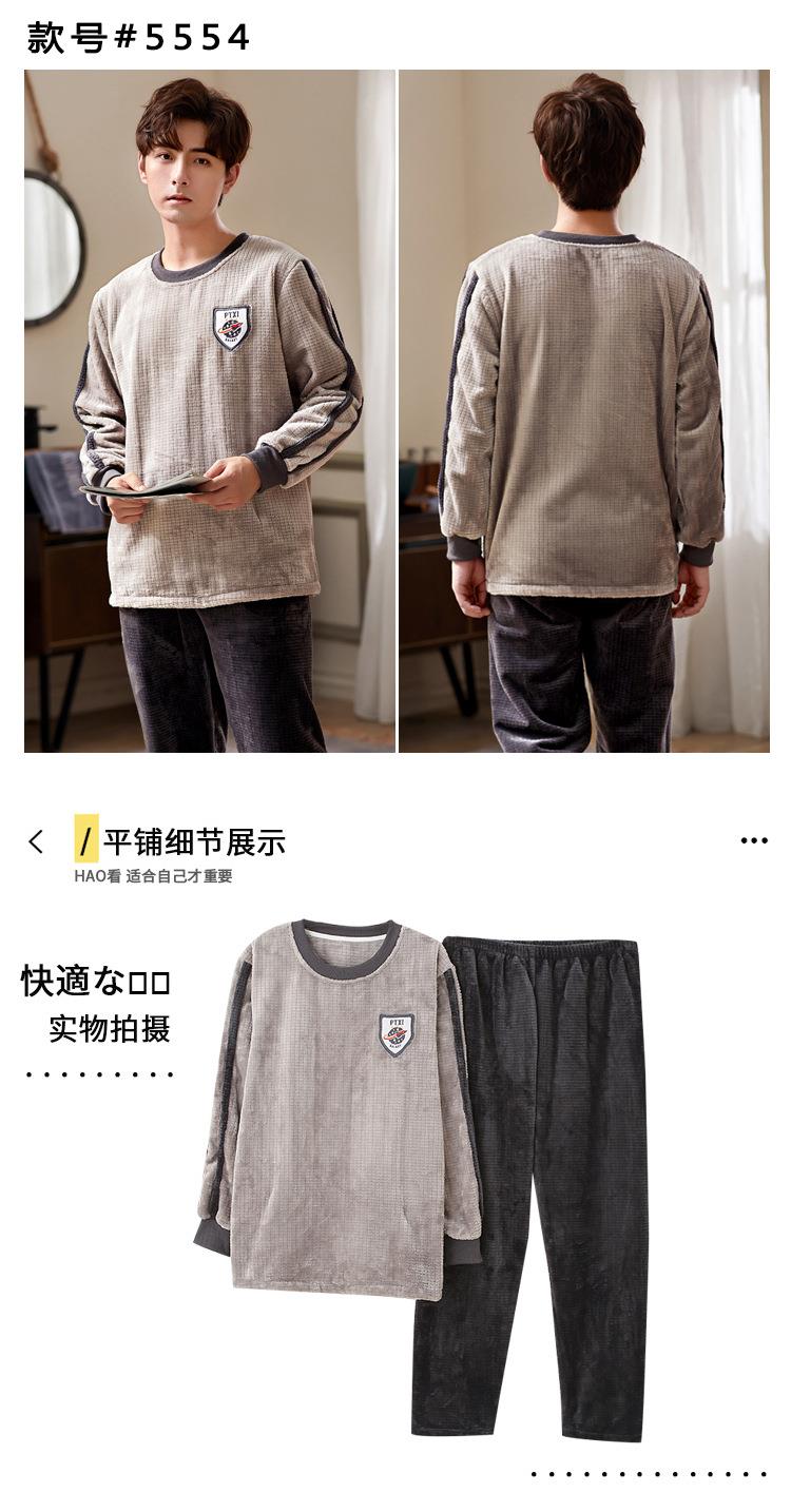 法兰绒男士睡衣冬季套装宽松大码加绒加厚保暖珊瑚绒可外穿家居服