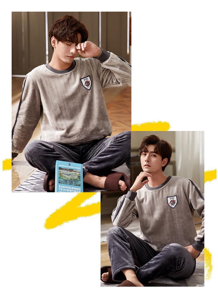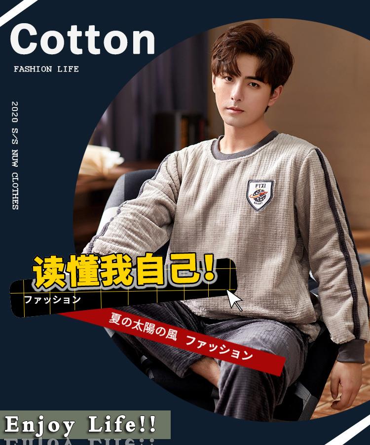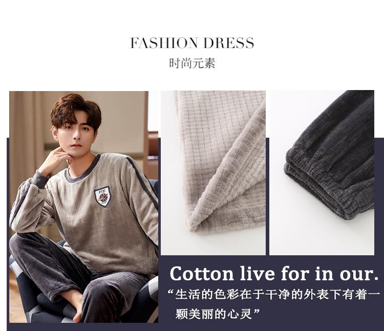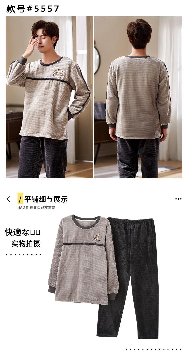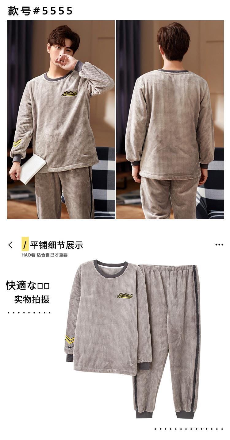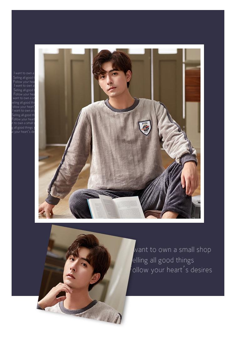 法兰绒男士睡衣冬季套装宽松大码加绒加厚保暖珊瑚绒可外穿家居服