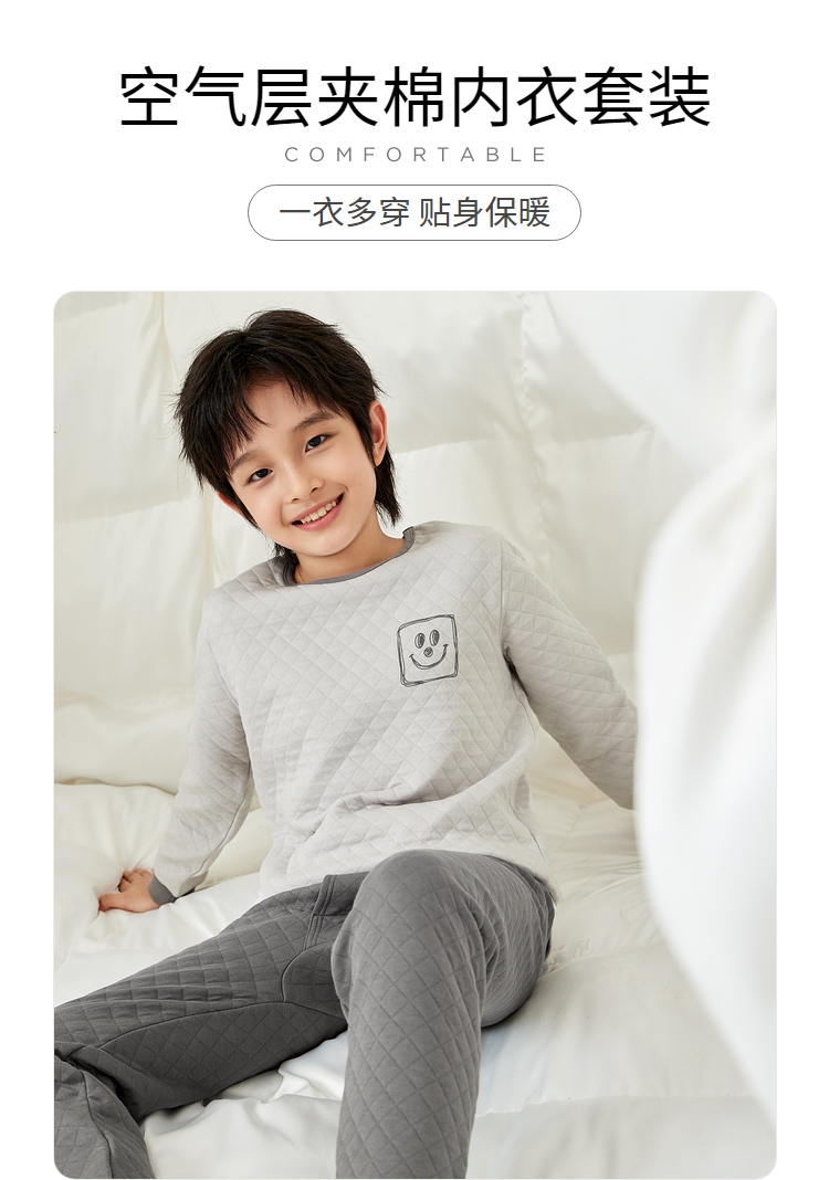 巴拉巴拉儿童保暖内衣套装冬季加厚夹棉男童舒适秋衣秋裤打底睡衣