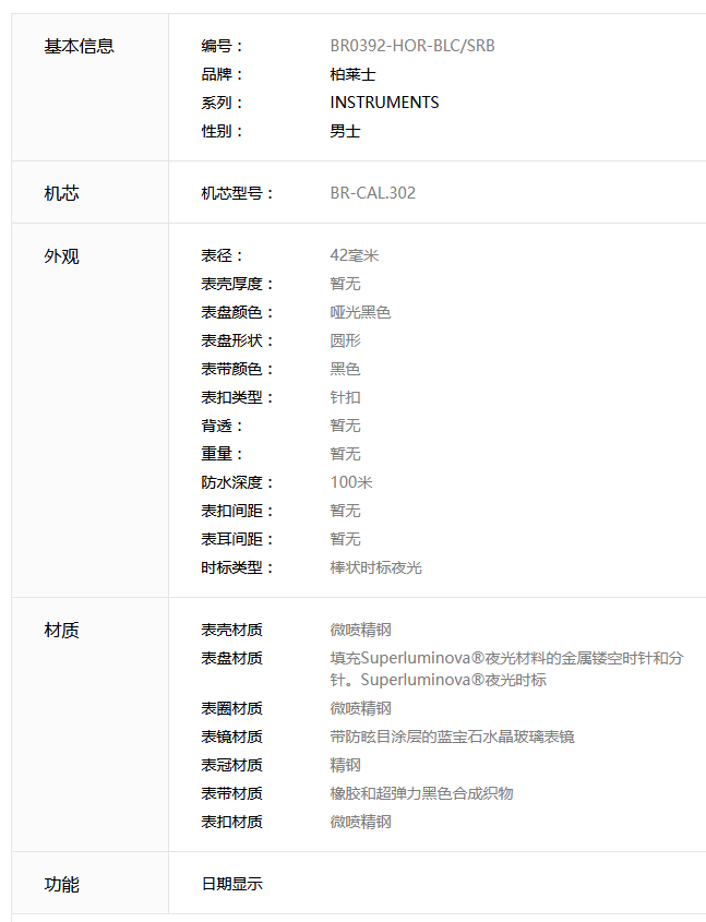 Bell & Ross 柏莱士 AVIATION系列 BR0392-HOR-BLC/SRB 男士腕表