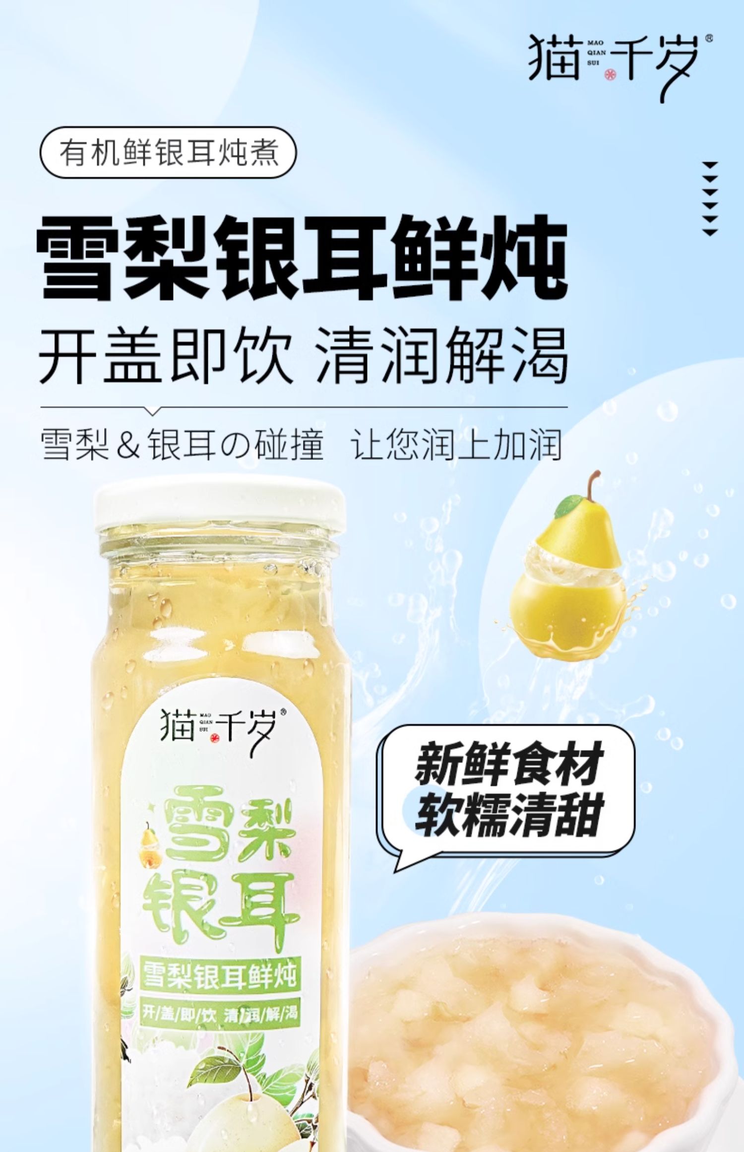 猫千岁雪梨银耳鲜炖 清润解渴 软糯清甜 商品缩略图0 猫千岁雪梨银耳鲜炖 清润解渴 软糯清甜 商品缩略图1 猫千岁雪梨银耳鲜炖 清润解渴 软糯清甜 商品缩略图2 猫千岁雪梨银耳鲜炖 清润解渴 软糯清甜 商品缩略图3