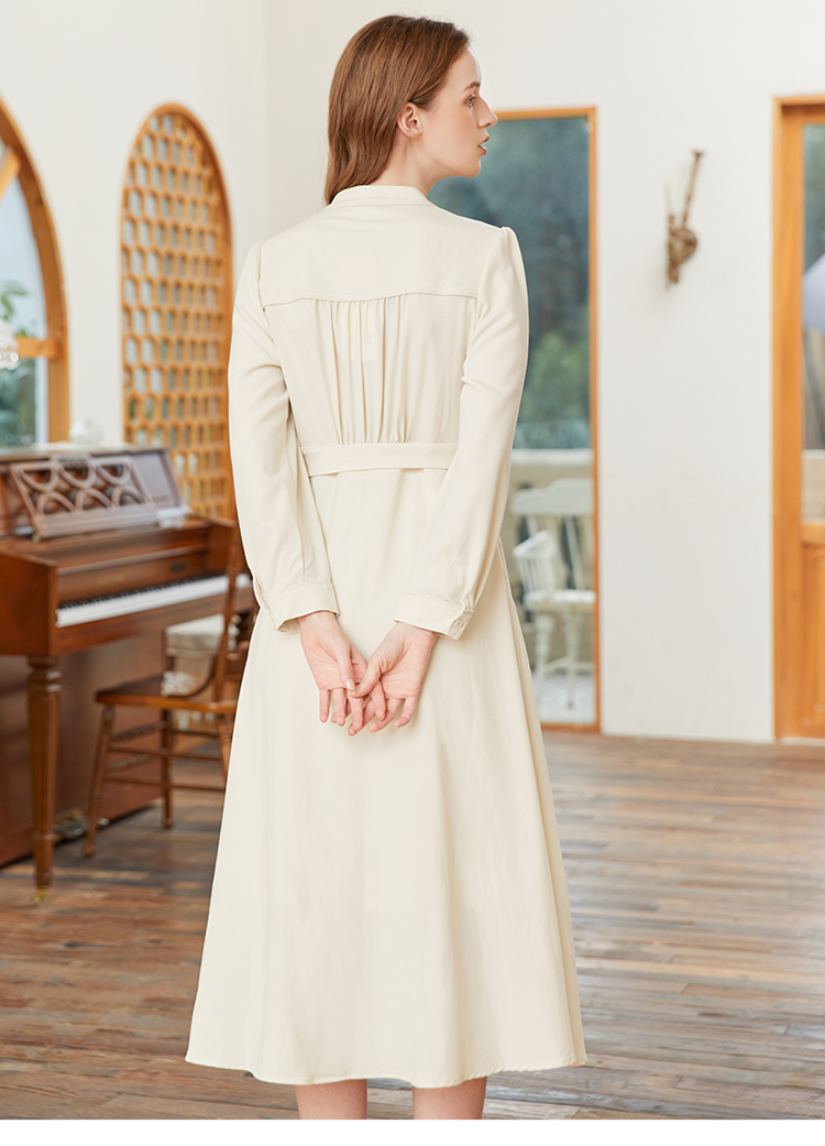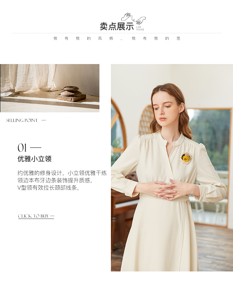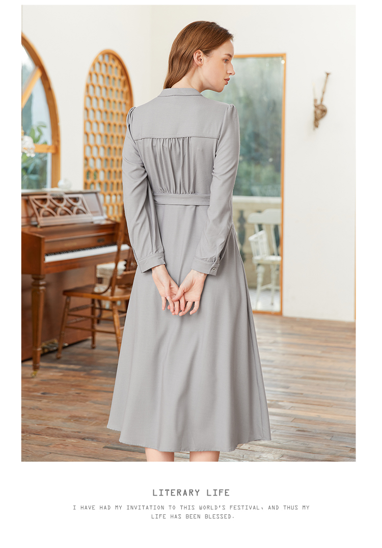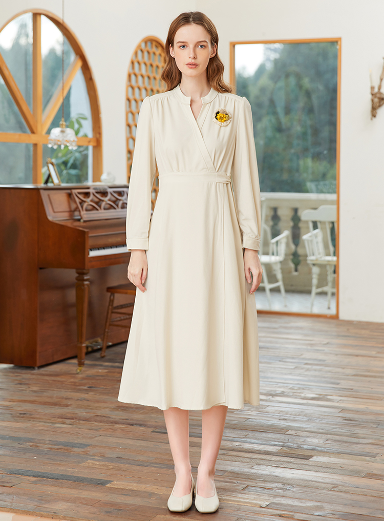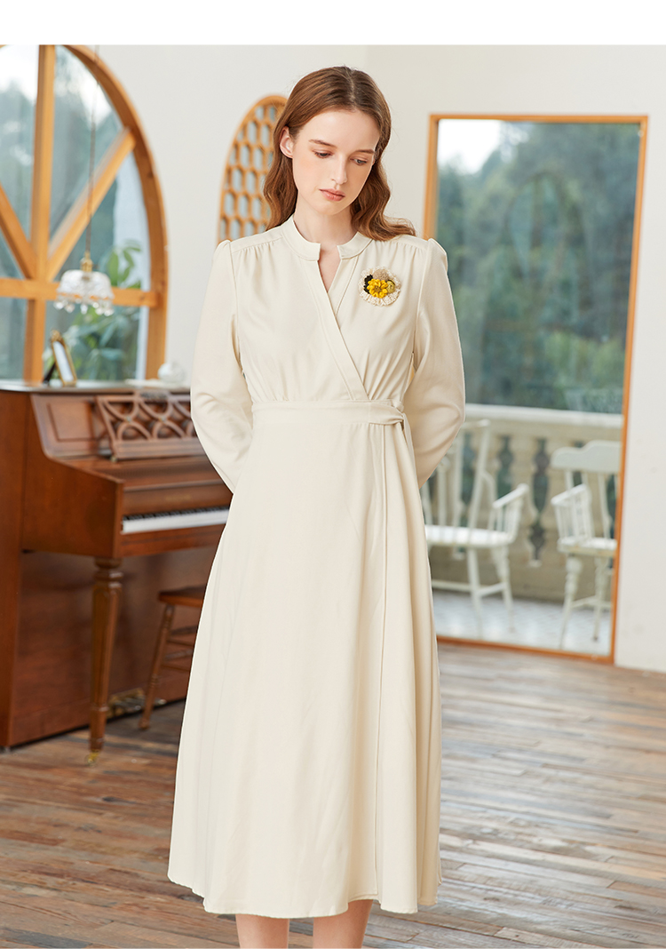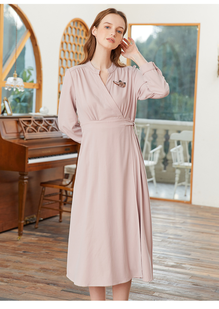 famecoco范可儿交叉v领连衣裙女春季一片式系带收腰长裙FAB1FA017