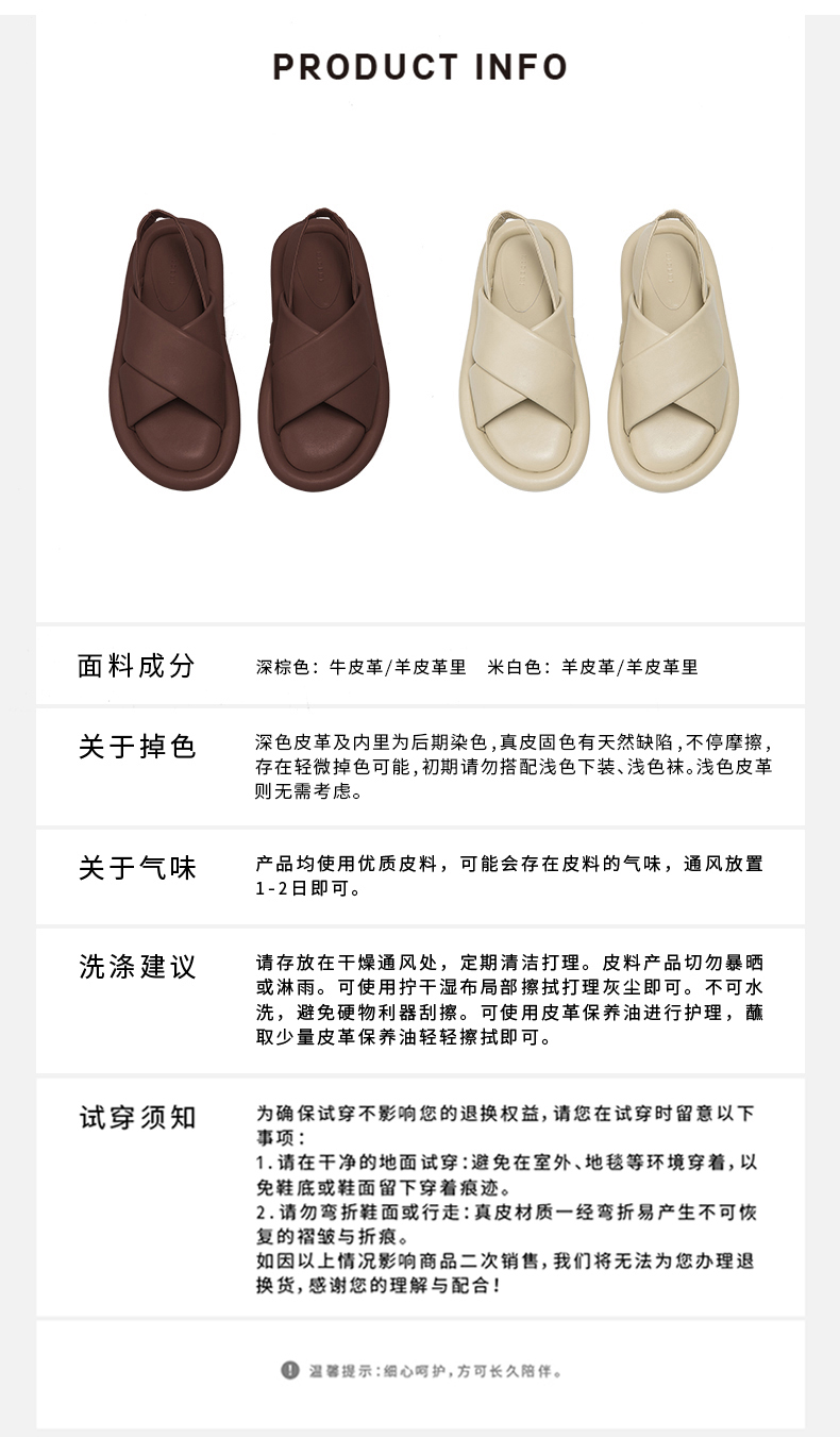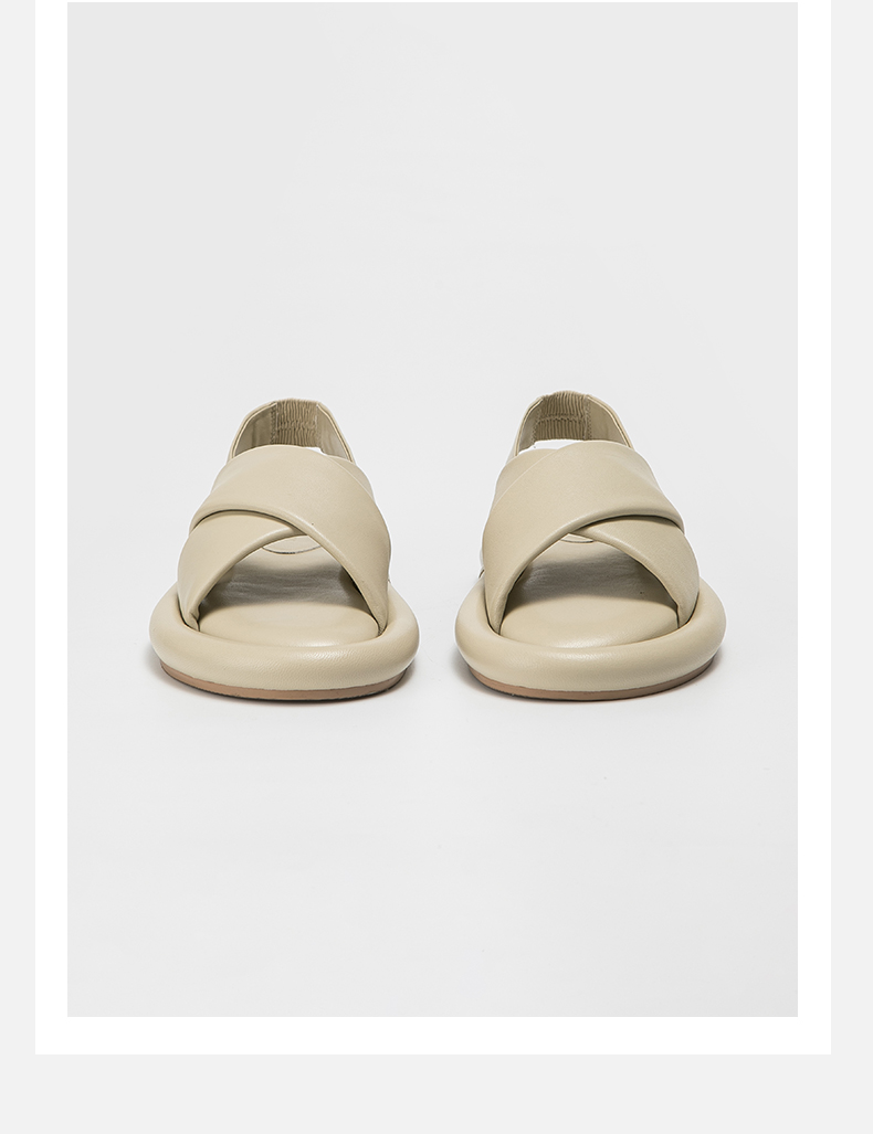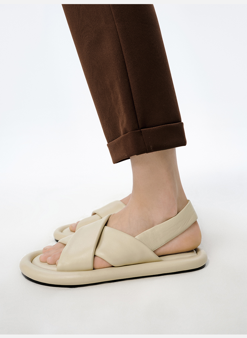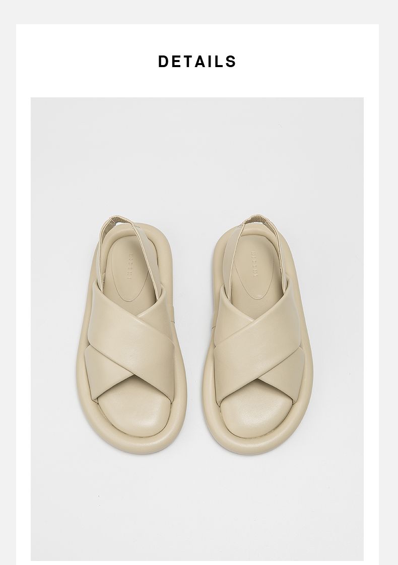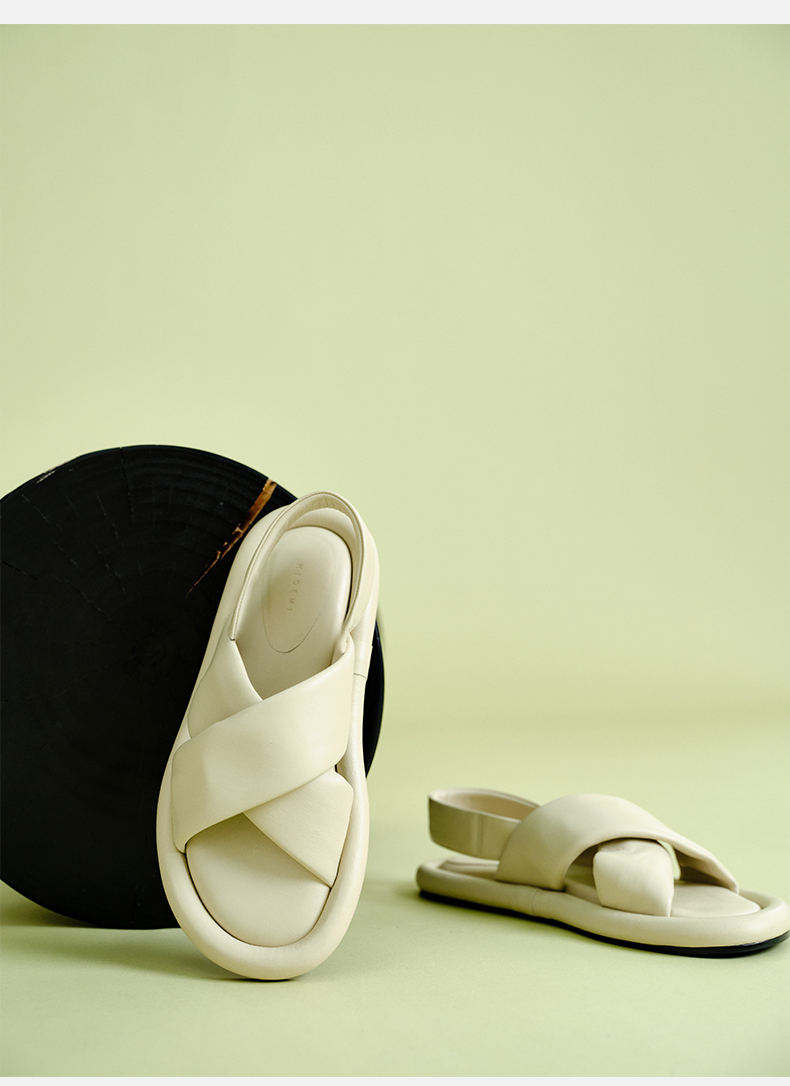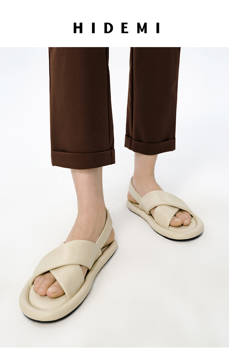 HIDEMI云朵厚底交叉带凉鞋 米白色/深棕色
