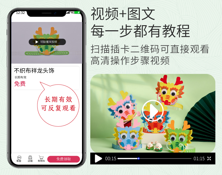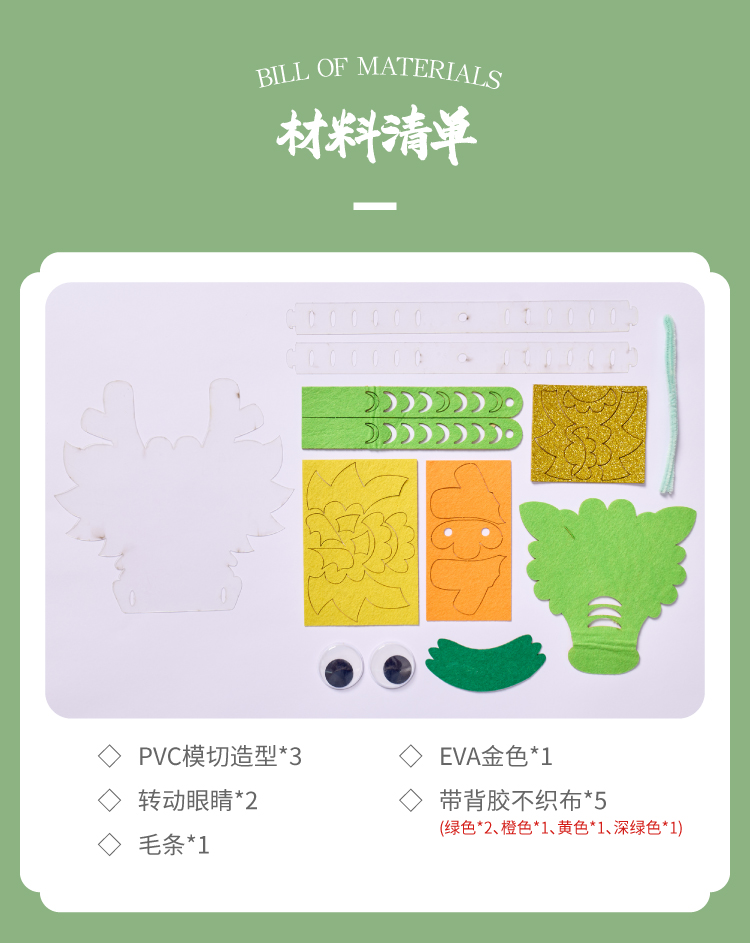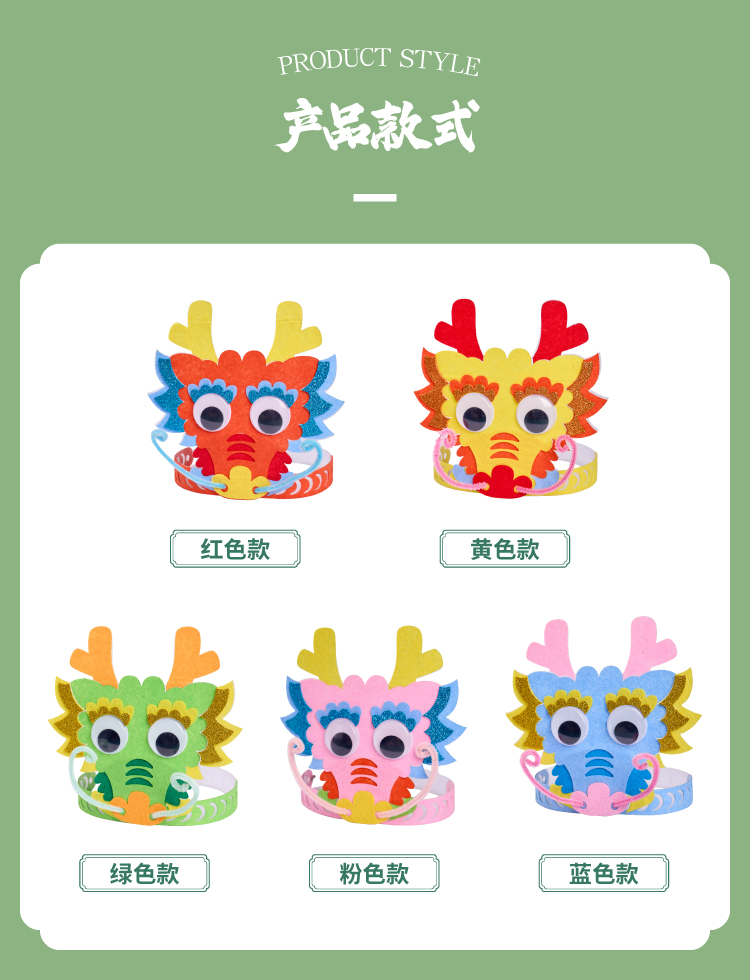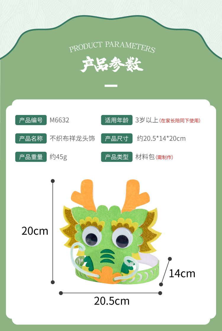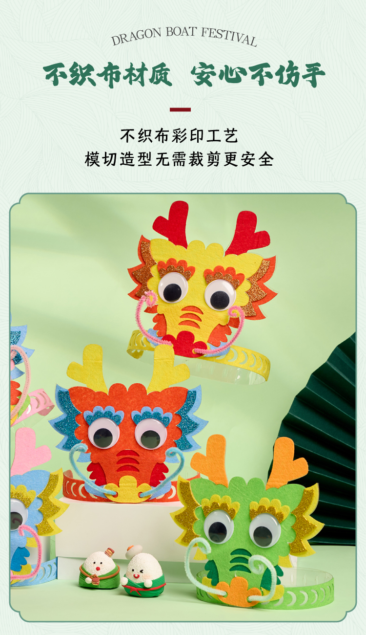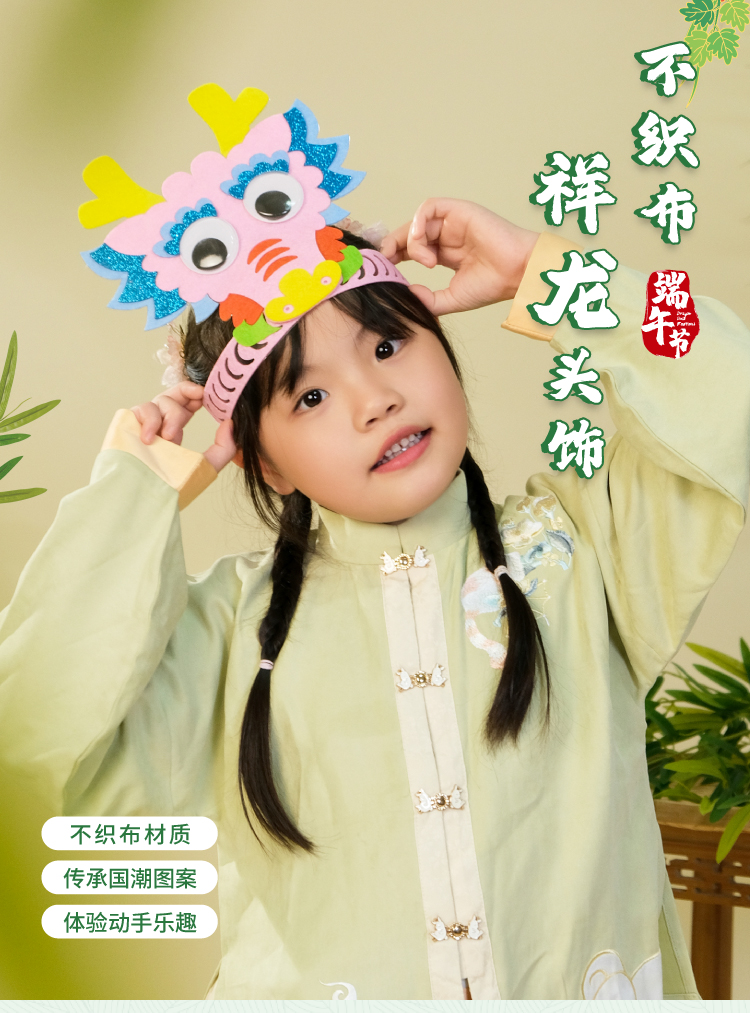 2025端午节礼物手工diy不织布祥龙头饰儿童制作材料包幼儿园表演道具