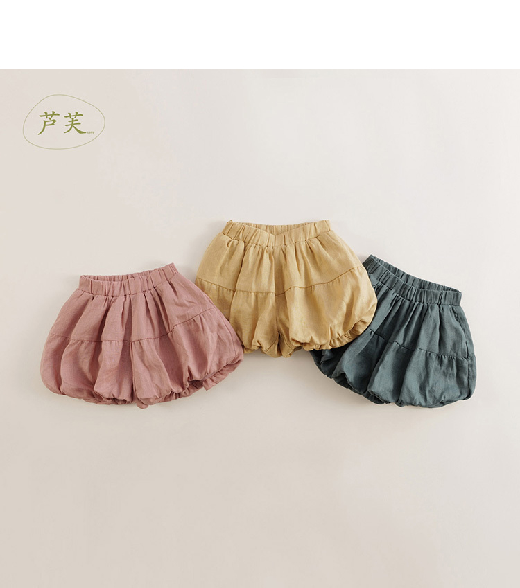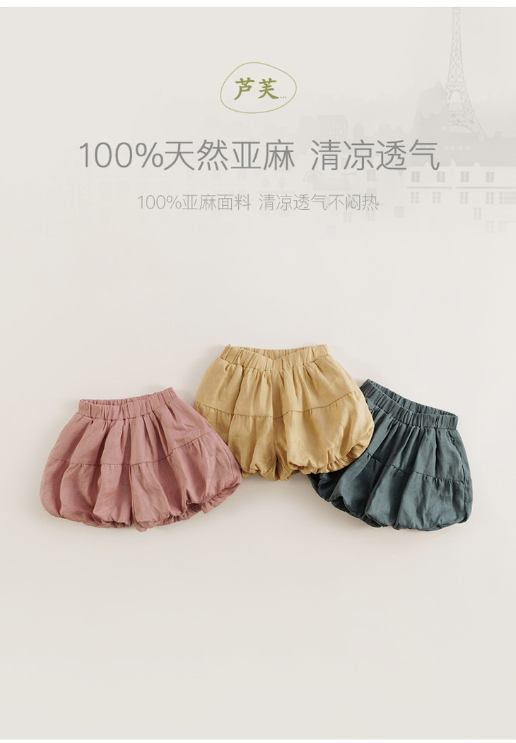 【马克珍妮 芦芙】新款夏装 女童天然亚麻花苞短裤230889