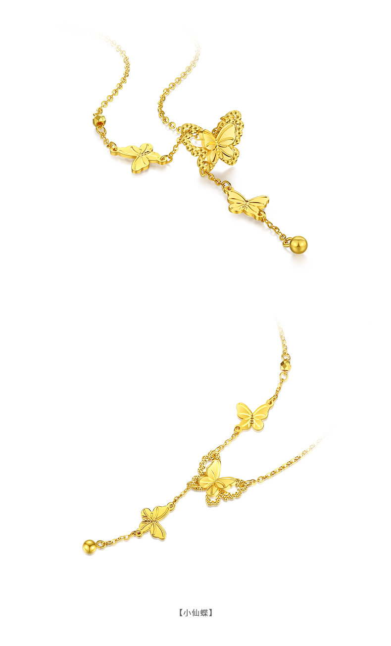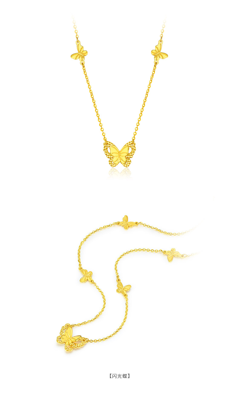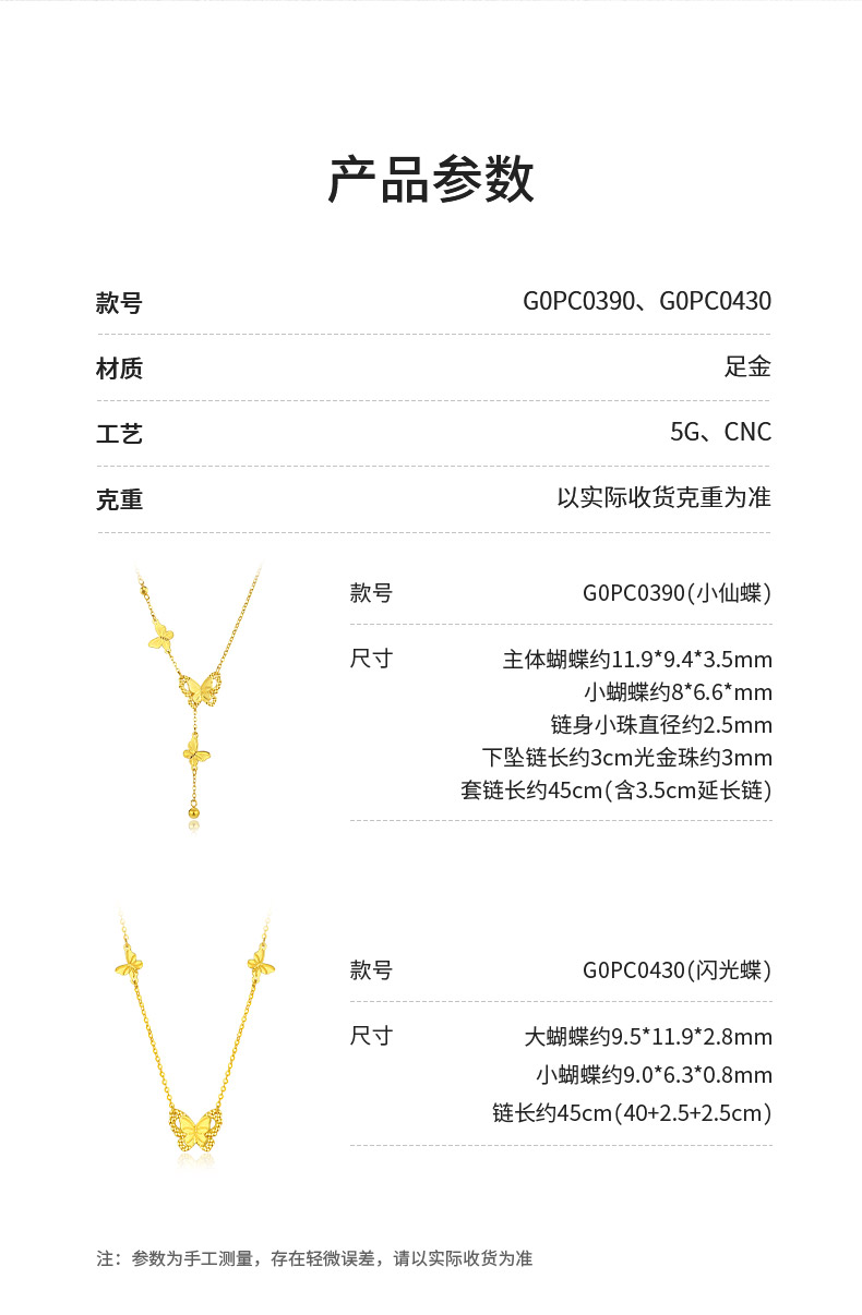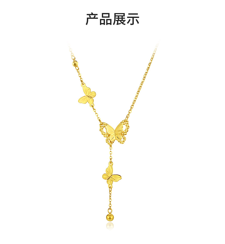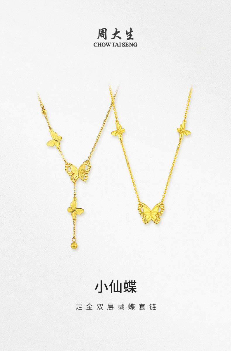 【特价秒杀】周大生黄金项链女足金5G流苏小仙蝶双层蝴蝶套链送女友礼物新款