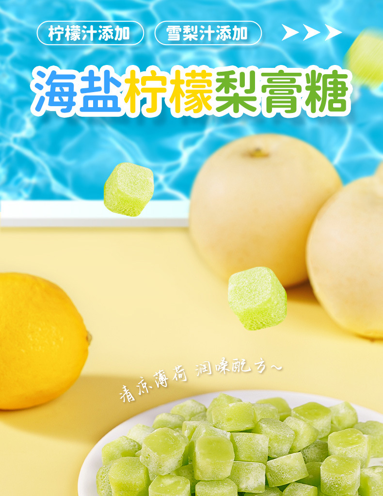 【120颗更值❗️海盐柠檬薄荷梨膏糖】甄选品质原料制作,雪梨汁/柠檬汁/蜂蜜/海盐/罗汉果/甘草/橘皮/桃仁/佛手/金银花/藿香,薄荷味零食,泡水喝瓶装混合食用水果味糖L
