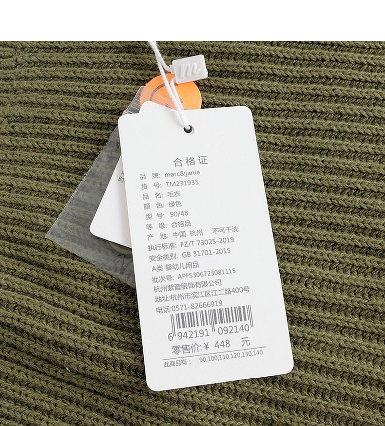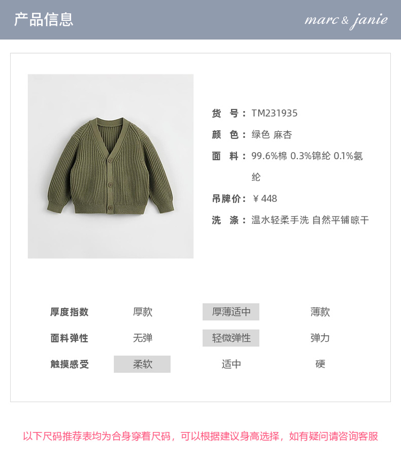 【户外风】马克珍妮秋装新款 男女童宽松V领针织开衫231935