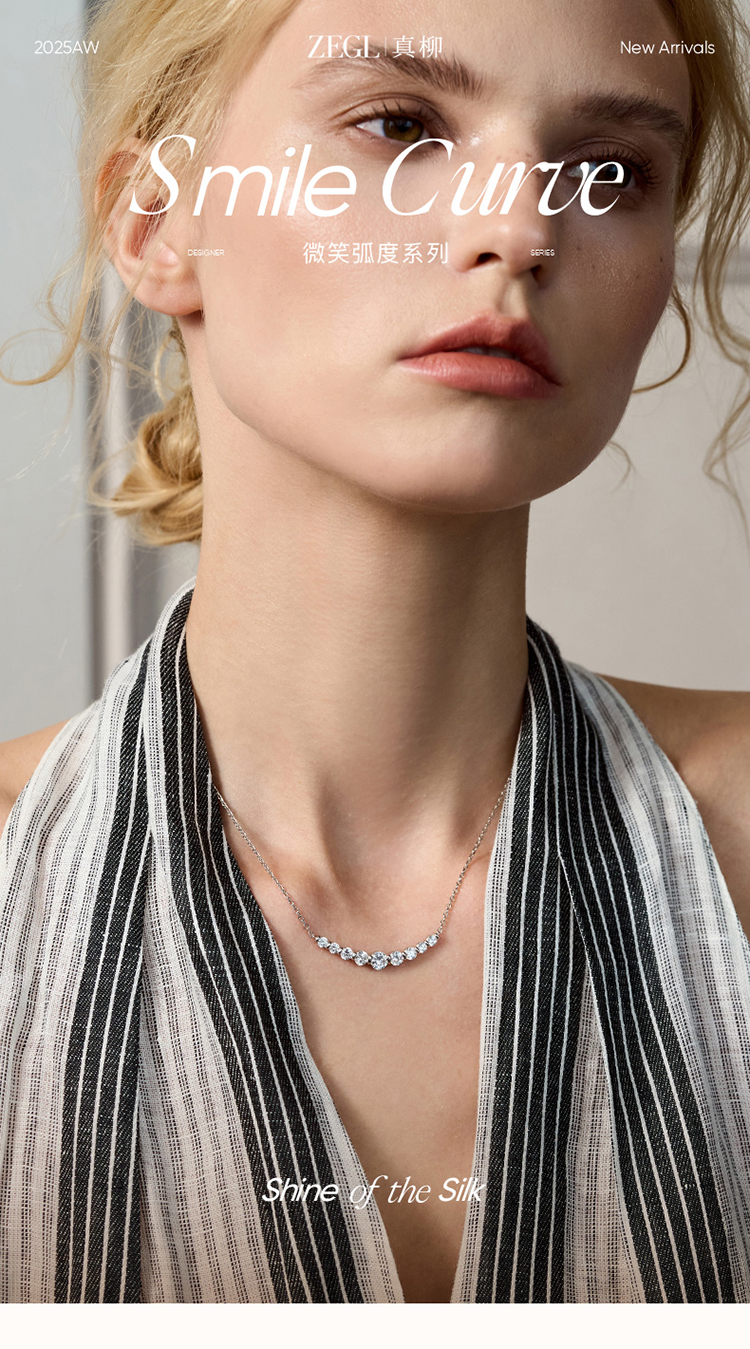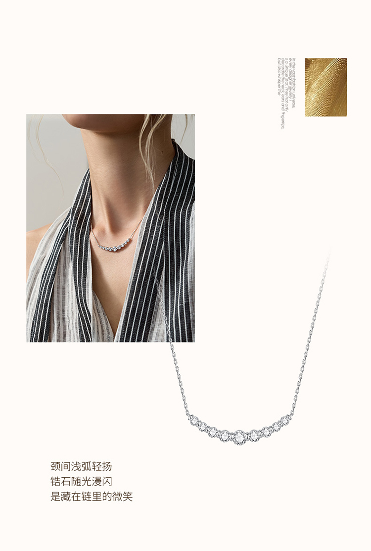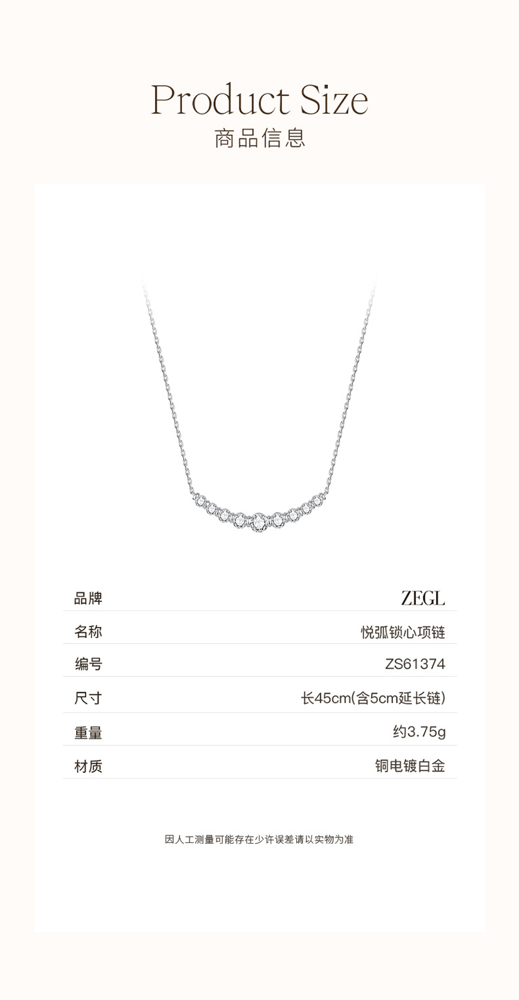 ZEGL微笑弧度系列银色项链女轻奢小众高级感锆石锁骨链百搭配饰品