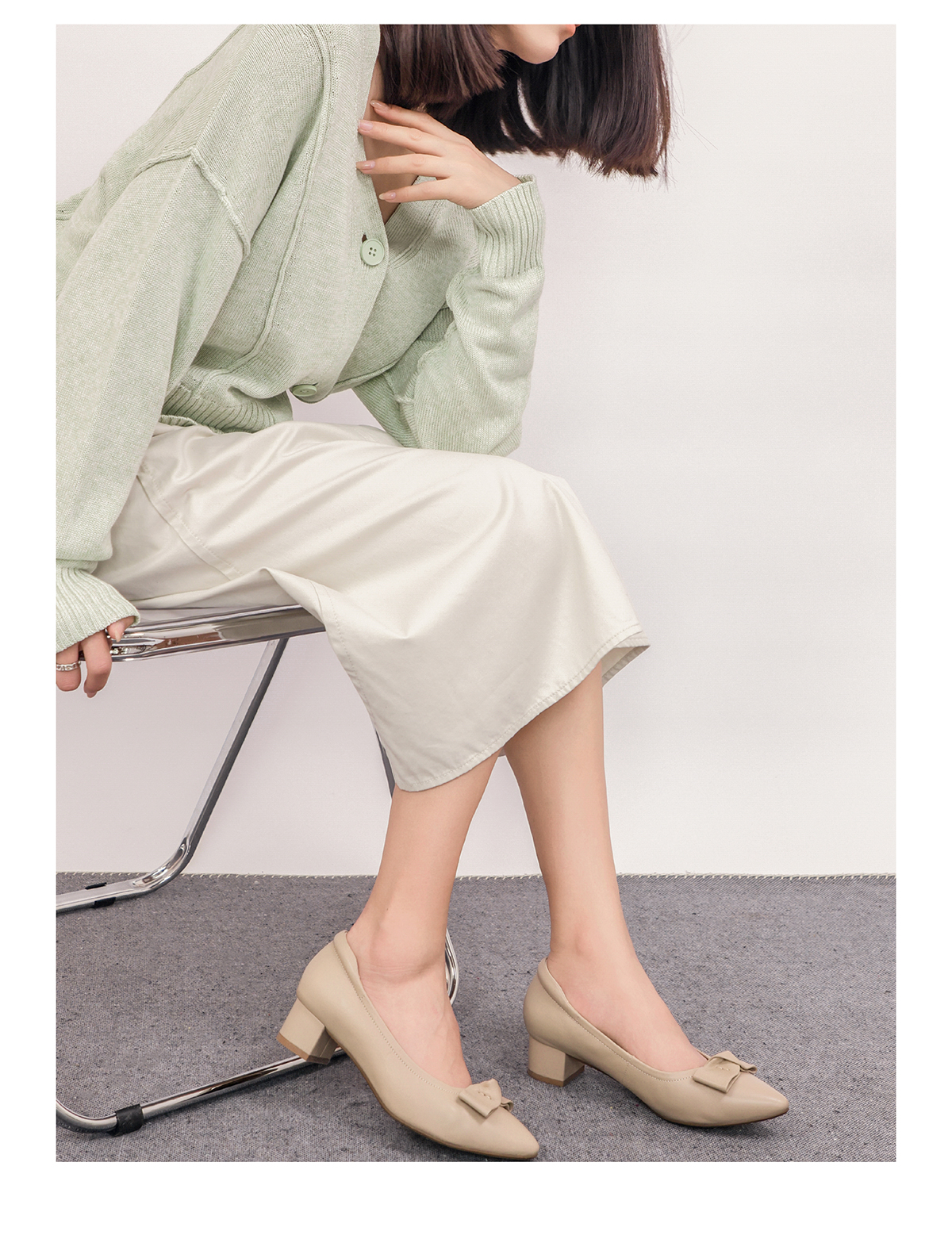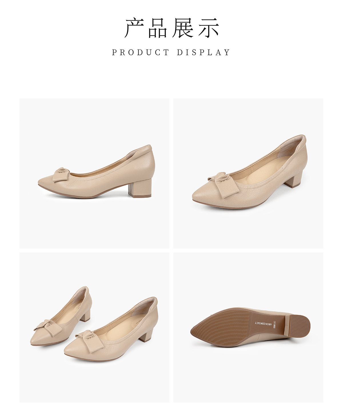 ARCHCONTACT安启美奈浅口蝴蝶结小高跟单鞋52804