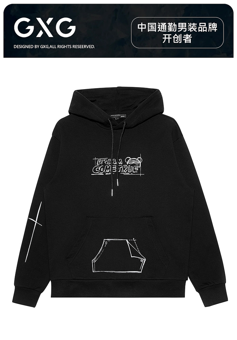 GXG男装【涂鸦熊口袋】秋季时尚潮流日常运动休闲男式连帽卫衣K&C
