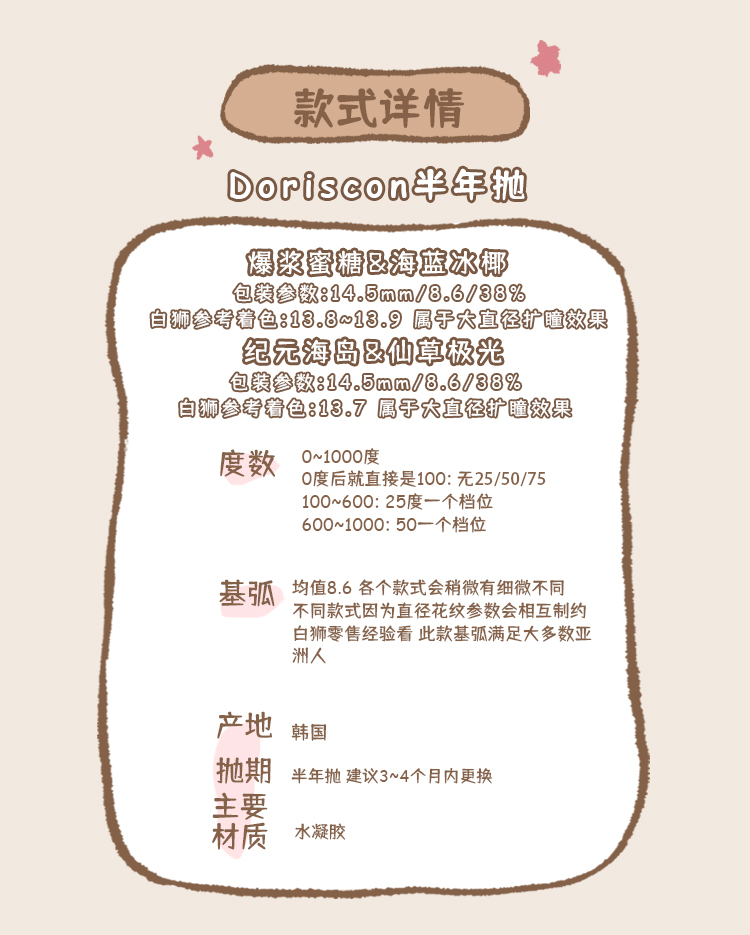 Doriscon旗下 纪元海岛&仙草极光|14.5mm白狮参考着色大直径 韩产半年抛